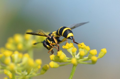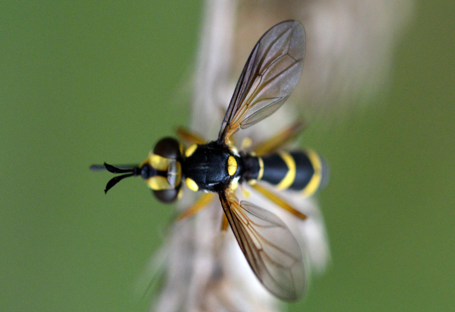 Para finalizar, apuntar que estos dos dípteros tienen una biología bastante diferente. Sobre Ceriana vespiformis, según he encontrado, se trata de un insecto saproxílico. Es decir, que las larvas se desarrollan en madera muerta y en descomposición. Y sobre Conops, se trata como otros conópidos de especies que parasitan a abejas y avispas. Las hembras clavan un huevo en el abdomen de himenópteros de tal manera que las larvas se irán alimentando de su huésped. Esto muestra que su parecido con una avispa les beneficia, encajando con la definición de mimetismo. Ahora bien, en el caso de Ceriana vespiformis, desconozco en qué le beneficiaría parecerse a una avispa. O quizás, resulte que lo que necesita es parecerse a un conópido. Especulaciones.