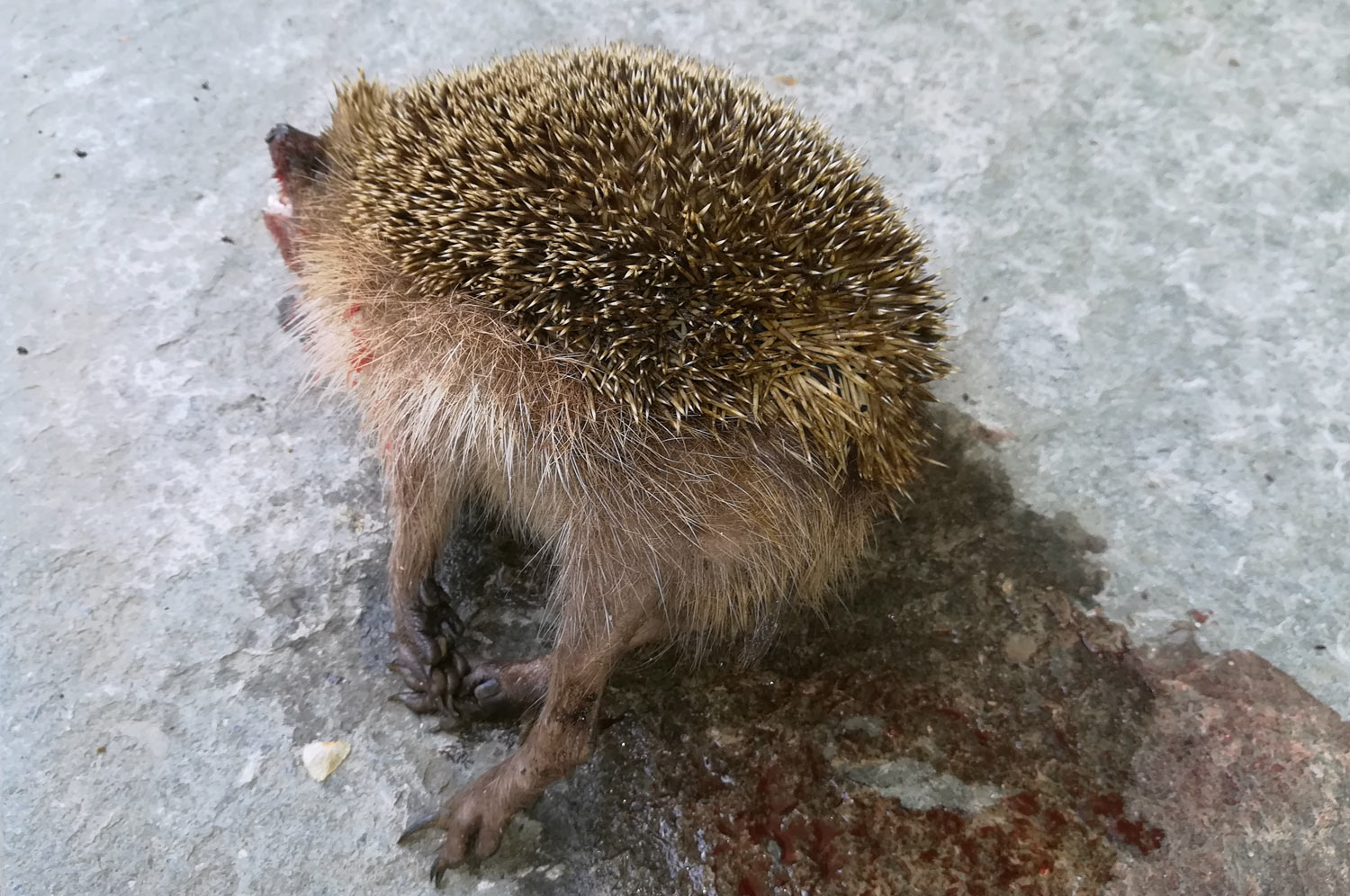 Respecto a la especie de erizo, en el este de la Península Ibérica donde vivo se pueden encontrar dos, el erizo europeo (Erinaceus europaeus) y el erizo moruno (Atelerix algirus), aunque esta segunda especie parece que es escasa. No es fácil su identificación para una persona como yo que no estoy versado en micromamíferos que no sean sinantrópicos. Sin embargo, después de inspeccionarlo, aseguraría que se trata de erizo europeo. Me fijé sobre todo en que las púas de la cabeza no estaban separadas por una franja central relativamente ancha como sucede en el erizo moruno [2].