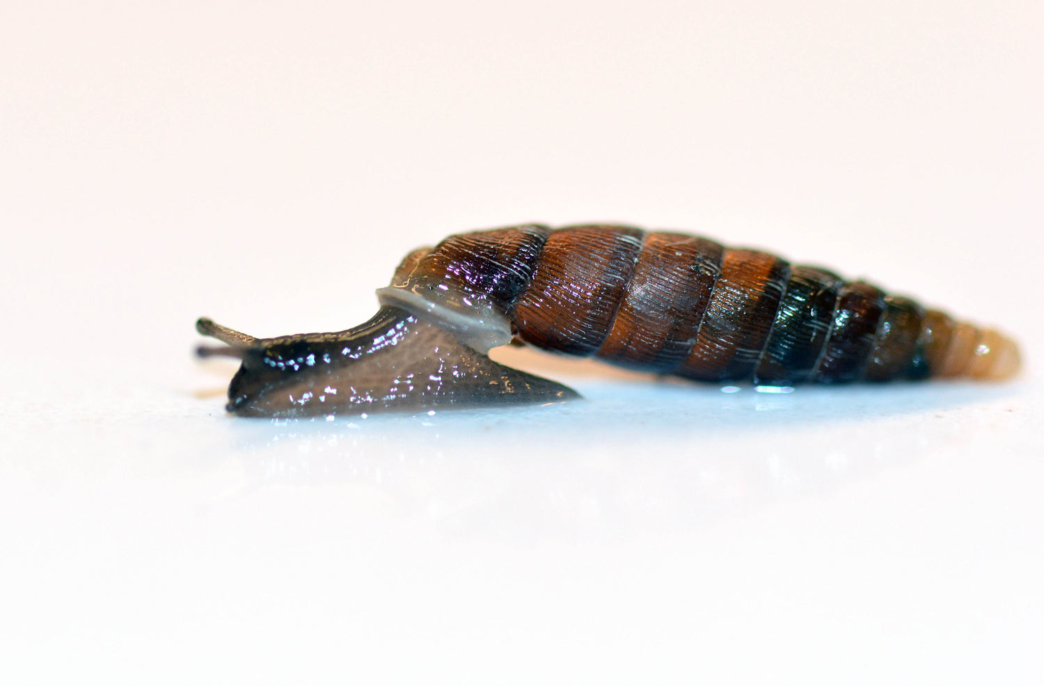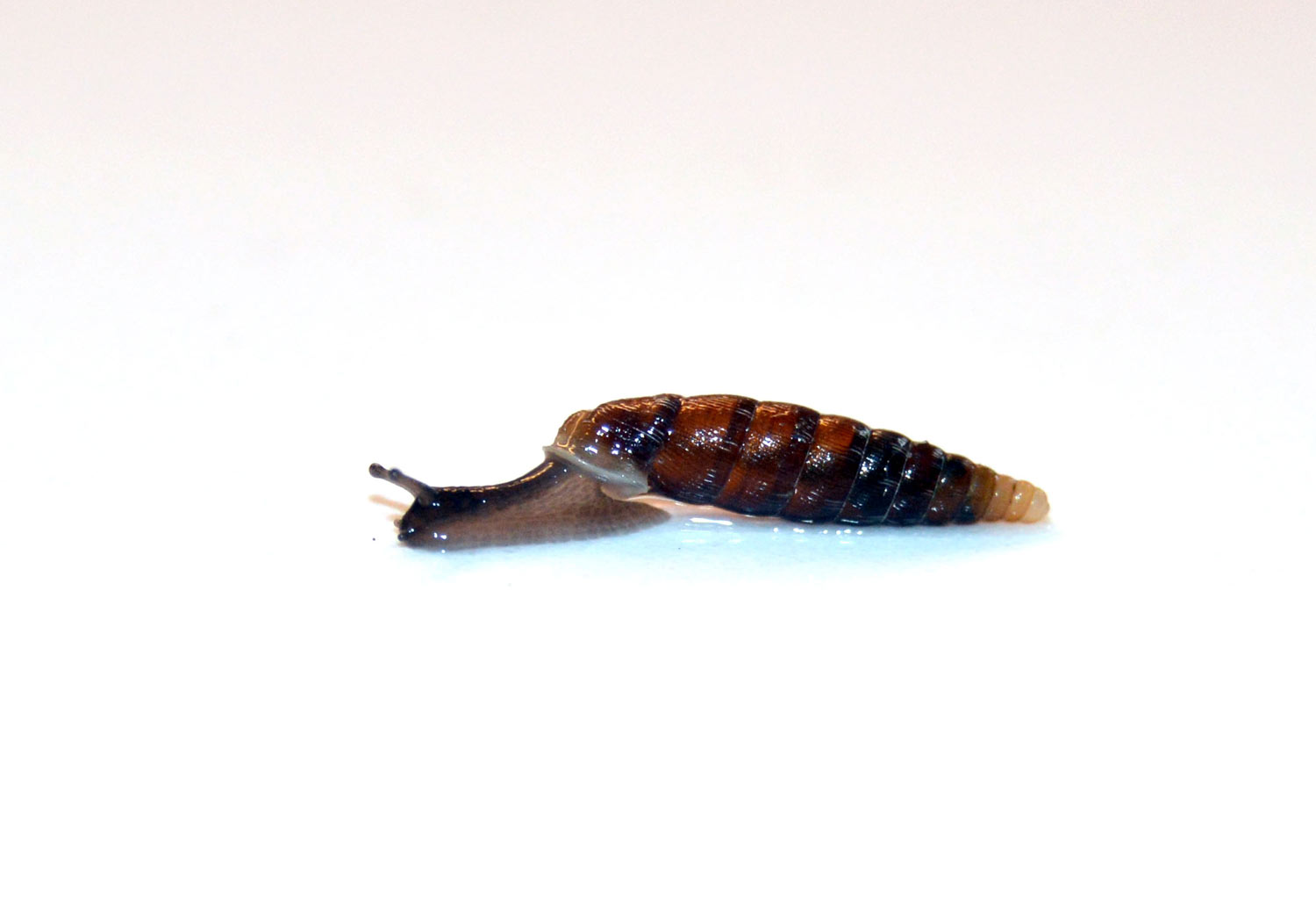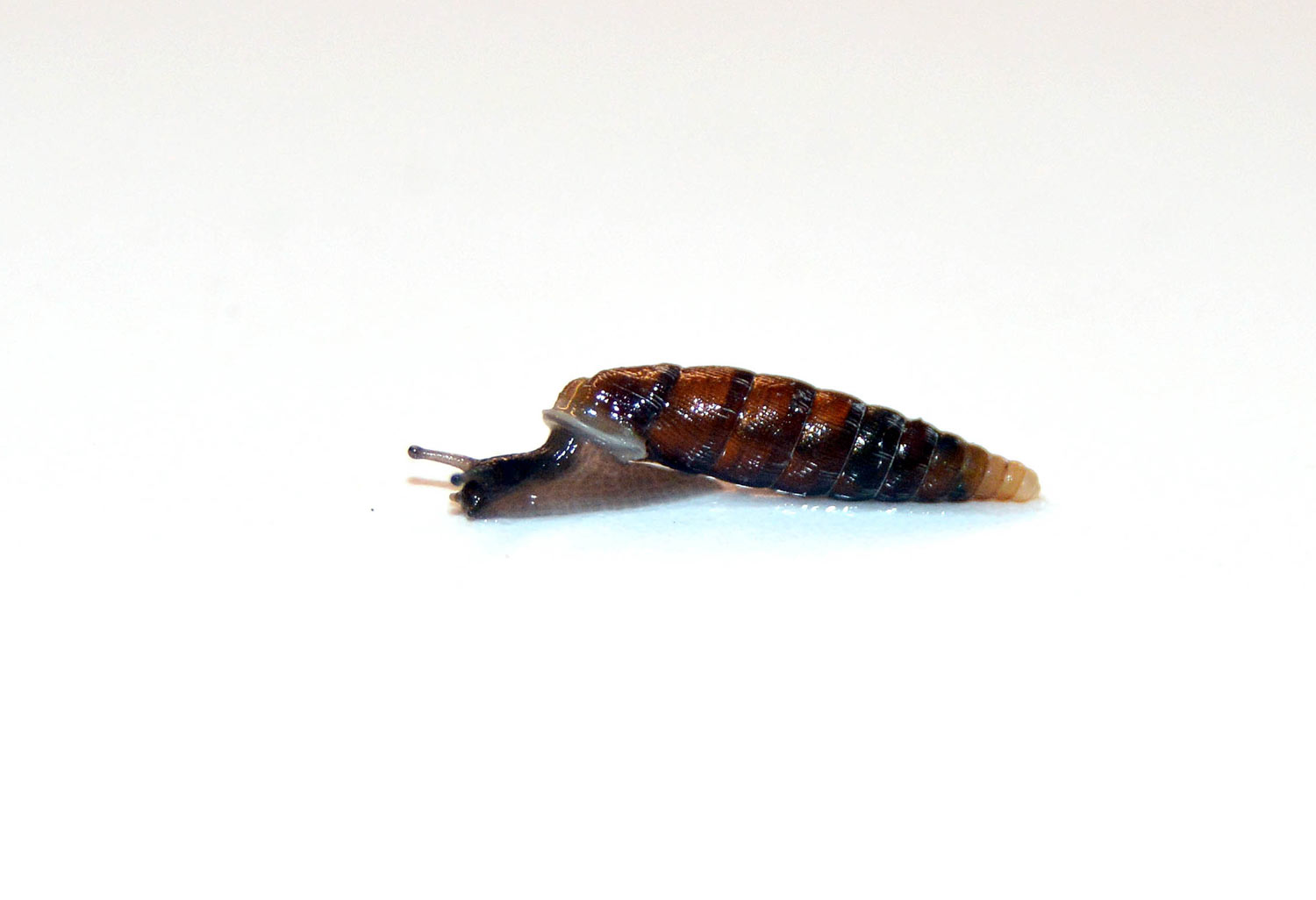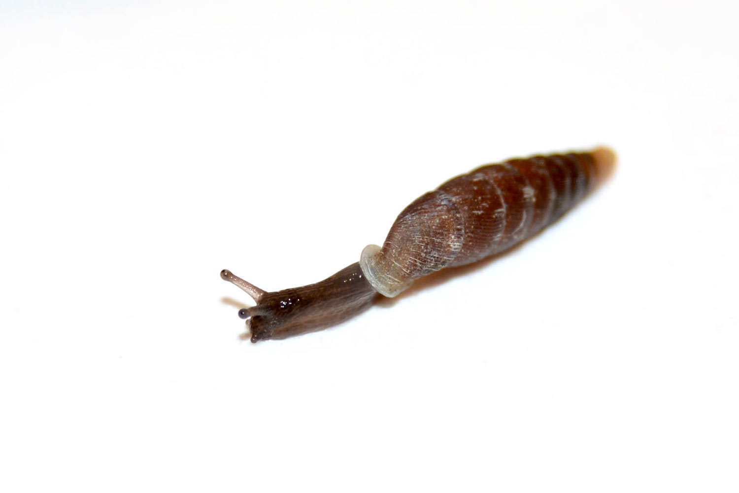 Encontré en Roda de Ter, Osona (Barcelona), un buen número de caracoles terrestres de pequeño tamaño con la concha cónica y alargada (figura 1). Estaban trepando por la pared de una casa rodeada de un jardín descuidado y con la hierba crecida. Me pareció su concha de gran belleza. Recogí cinco individuos para observarlos al detalle en casa. Me gusta observar estos animales que parece que circulen panchos y sin miedo.