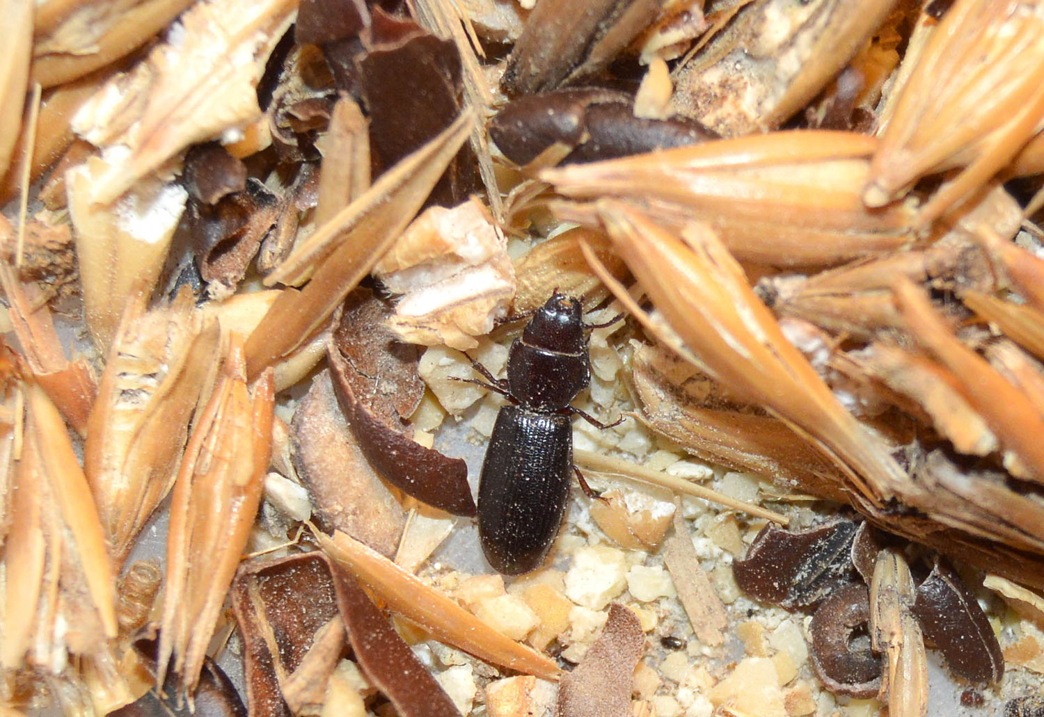 En la Península Ibérica, hay registros de tres especies del género Tenebroides. Además de T. mauritanicus, hay T. fuscus y T. moroccanus. Estas especies se pueden distinguir observando la forma de las antenas y, en especial, los artejos de su extremo [1]. Desconozco si las otras especies pueden desarrollarse sobre grano almacenado. Aunque no lo parece, dado que no he encontrado registros de ello. Ahora bien, también encontré otros coleópteros que son plaga de productos almacenados. Encontré Sitophilus granarius como principal plaga. Y luego había, de mayor a menor número, Oryzaephilus, Tribolium, Cryptolestes y Rhyzopertha.