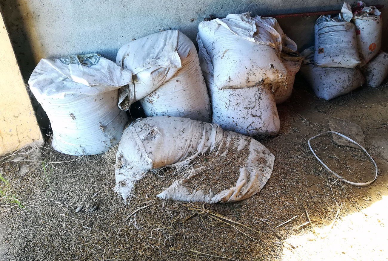 Fig 7. Sobrante de trigo donde se desarrolla Tenebroides mauritanicus en una granja de Banyoles./ C. Pradera 08-2019
