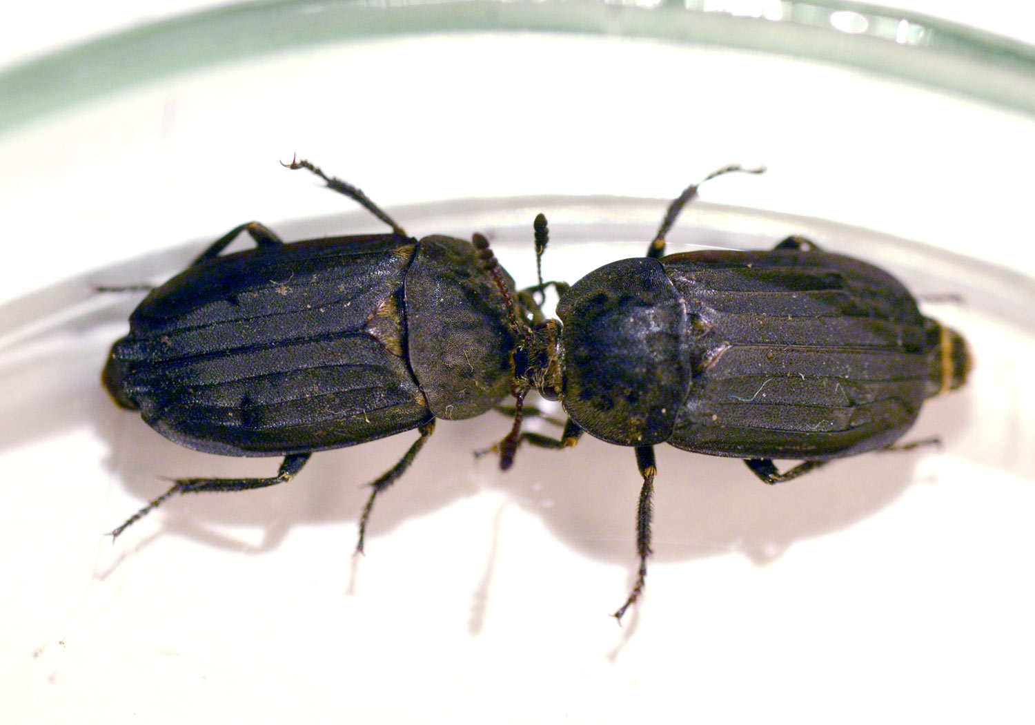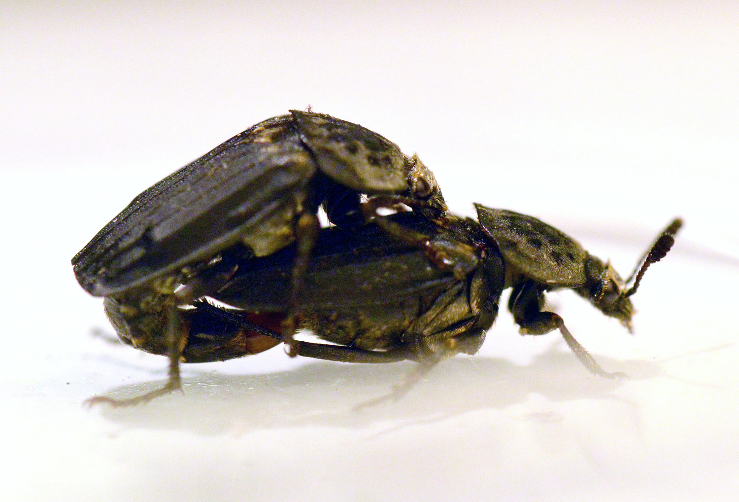 Encontré una diversa fauna cadaverina sobre un cadáver en les Masies de Roda, Osona (Barcelona). Busqué coleópteros y encontré de cuatro familias: Dermestidae, Histeridae, Silphidae y Staphylinidae. Después de observar un rato, me decidí por los Silphidae. Encontré del género Thanatophilus. En casa los observé y los identifiqué como pertenecientes a la especie Thanatophilus sinuatus. Según el catálogo de Silphidae de Fernando Prieto et al. [1], en la Península Ibérica disponemos de tres especies. Además de la apuntada, se encuentran T. ruficornis y T. rugosus. También existe una cuarta especie, T. dispar, que se encuentra en Europa central y septerntrional. Ha habido alguna cita de esta especie en Cataluña, pero es posible que se trate de una mala identificación.