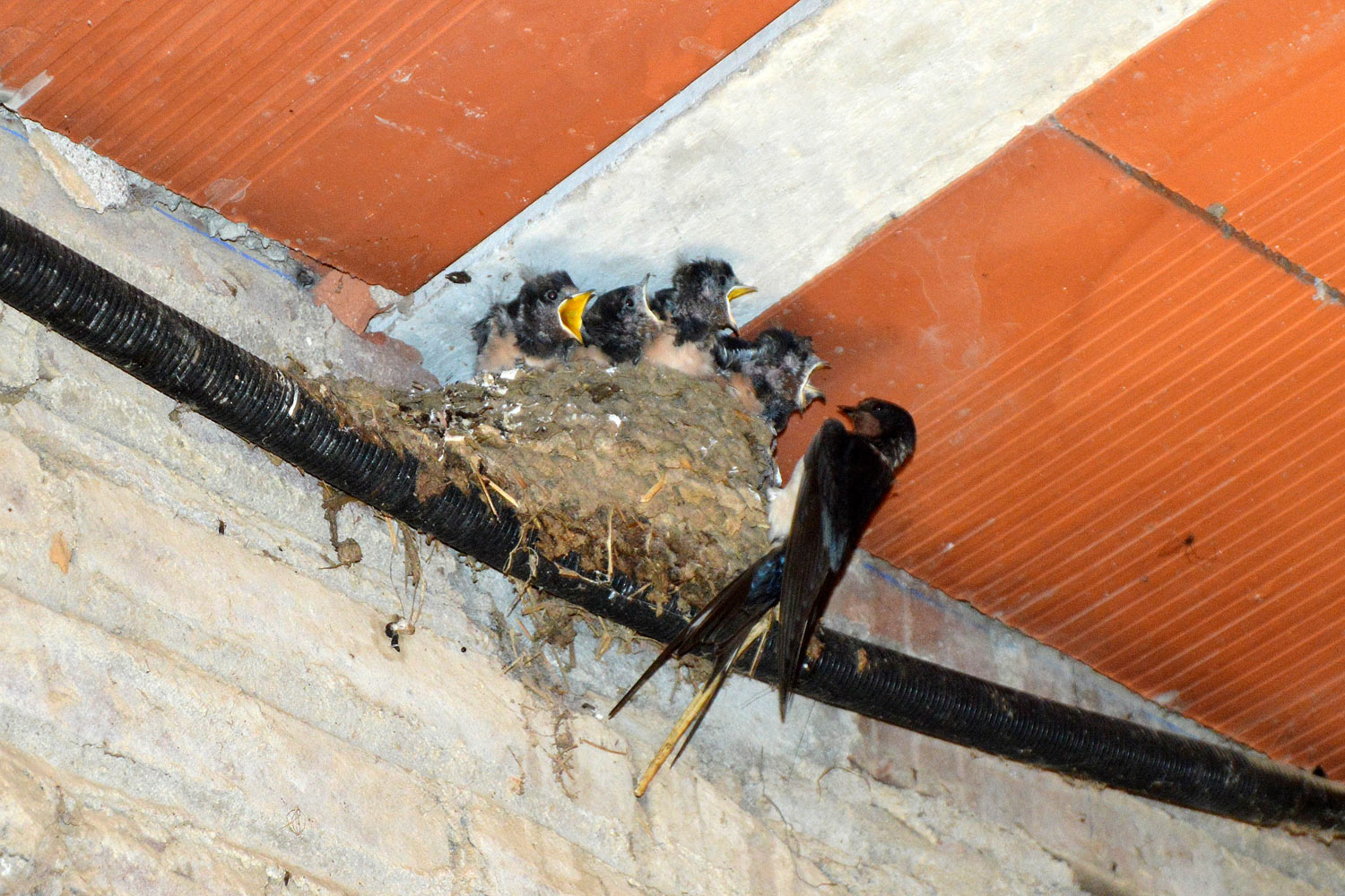 Como explicaba, este pasado mes pude visitar un montón de granjas donde las golondrinas estaban algunas empollando los huevos y otras alimentando ya a sus crías. En las viejas granjas encuentran espacio y un montón de insectos voladores de los cuales se alimentan. He de apuntar que en una granja, cuanto más cerrados estén sus edificios y cuanto mayor control se tenga de insectos voladores, menor cantidad de aves hay. Me pregunto si no habría que subvencionar a estas pequeñas explotaciones seculares que además vertebran el territorio manteniendo una población estable, en vez de apretarles tanto con normativa pensada para grandes explotaciones. Muchos agricultores y ganaderos han tenido que cerrar por ser inviable económicamente su explotación. Aguantan los que aguantan. Y lo hacen en su mayoría porque le echan un montón de horas y porque heredaron edificios y tierras de sus ancestros. Todo parece enfocado para el gran beneficio y para que los grandes productores se queden con todo el negocio y echen a los pequeños productores.