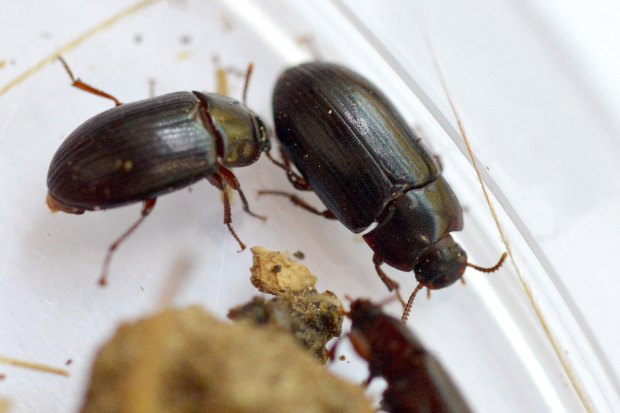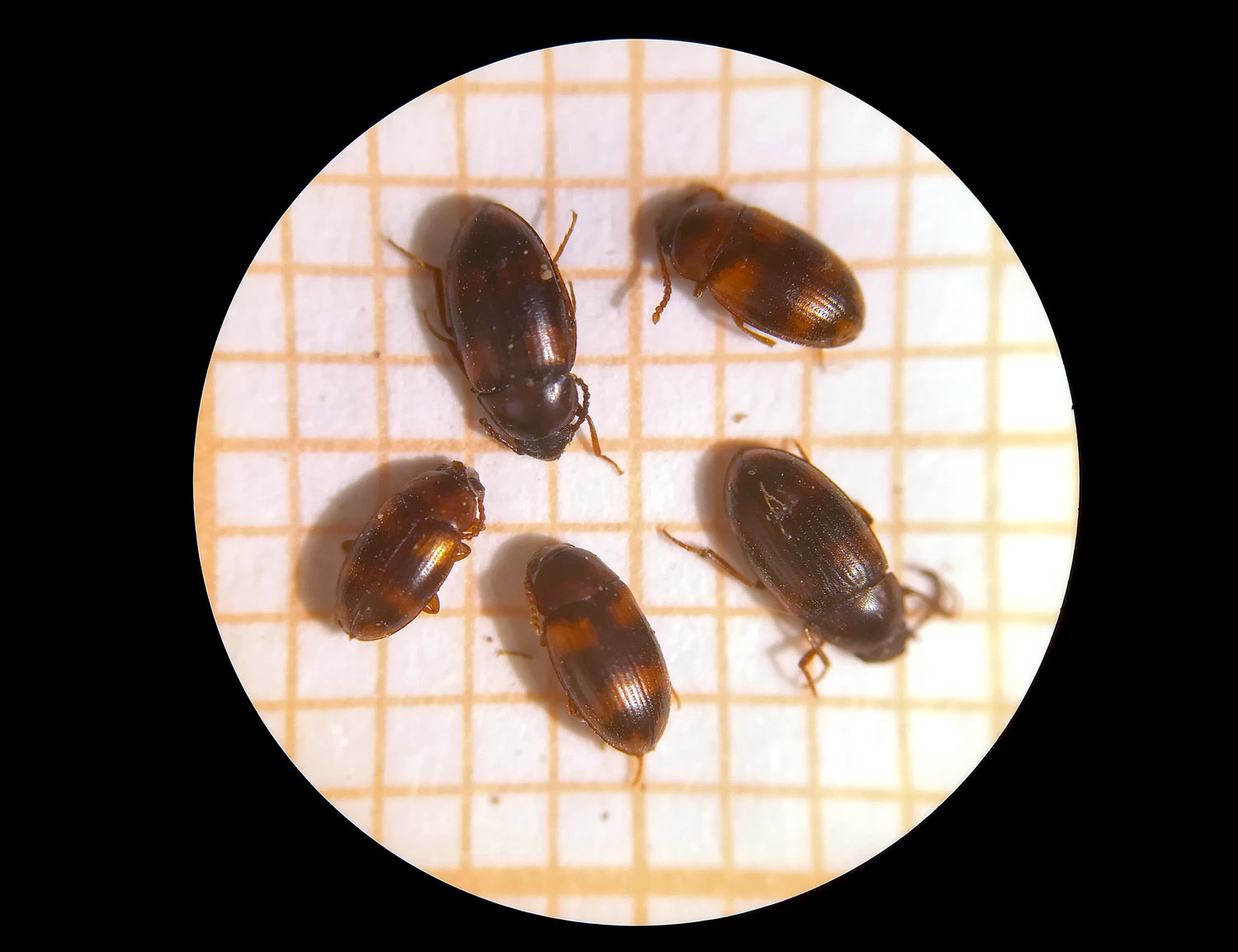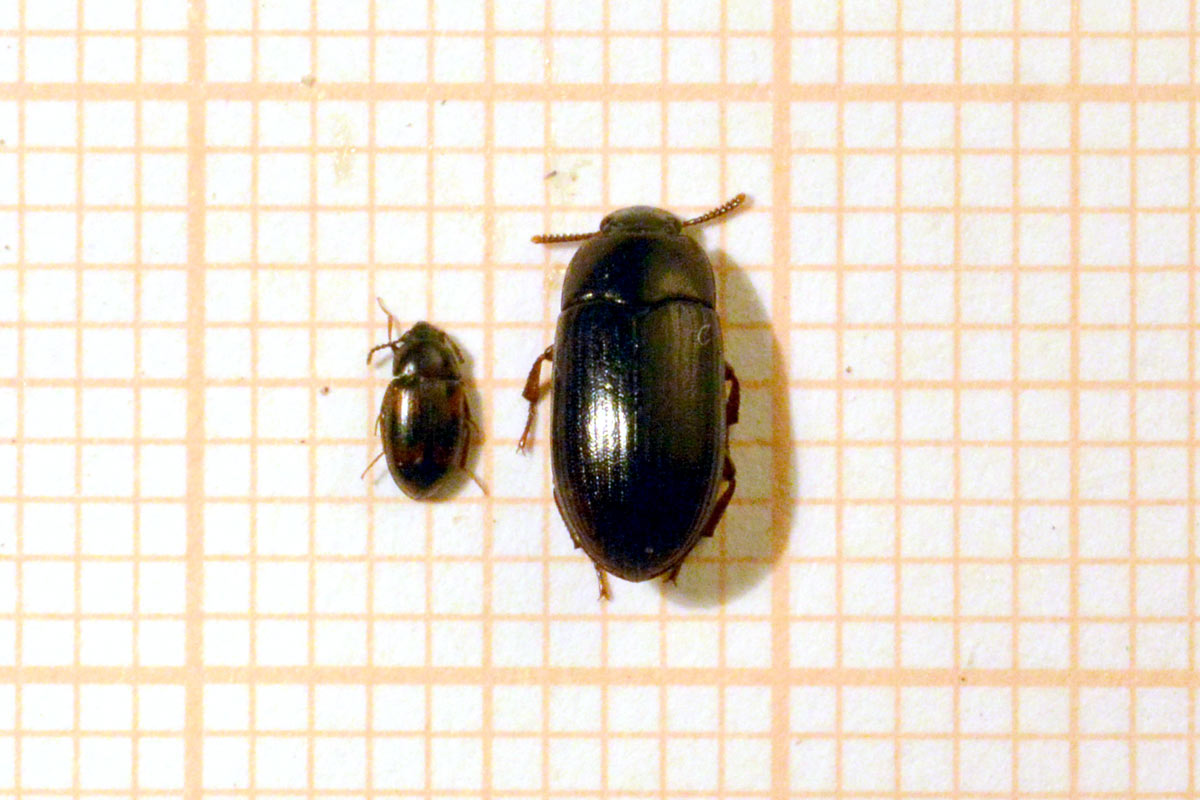 Fig 3. Alphitophagus bifasciatus (izquierda) y Alphitobius diaperinus (derecha)./ C. Pradera 09-2019