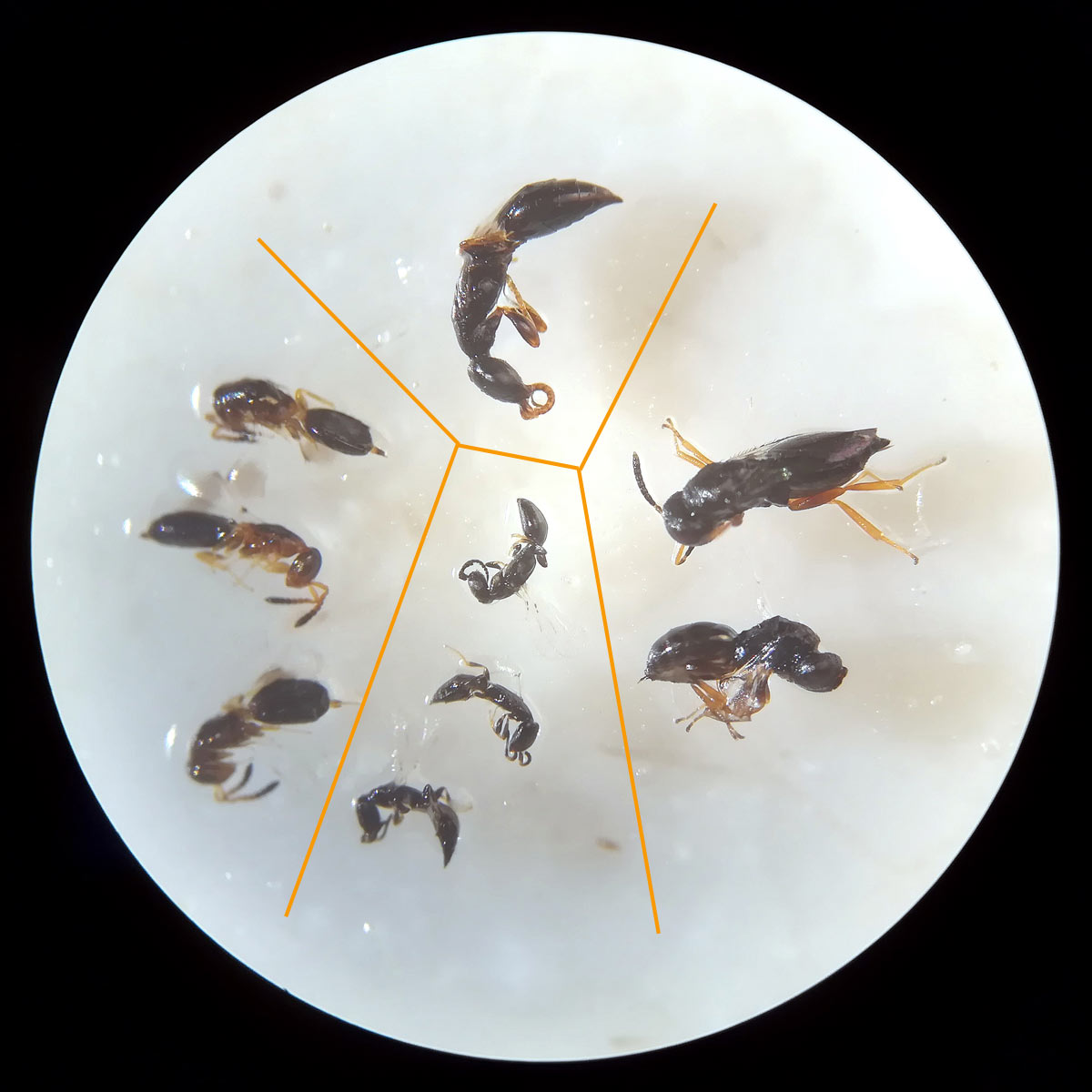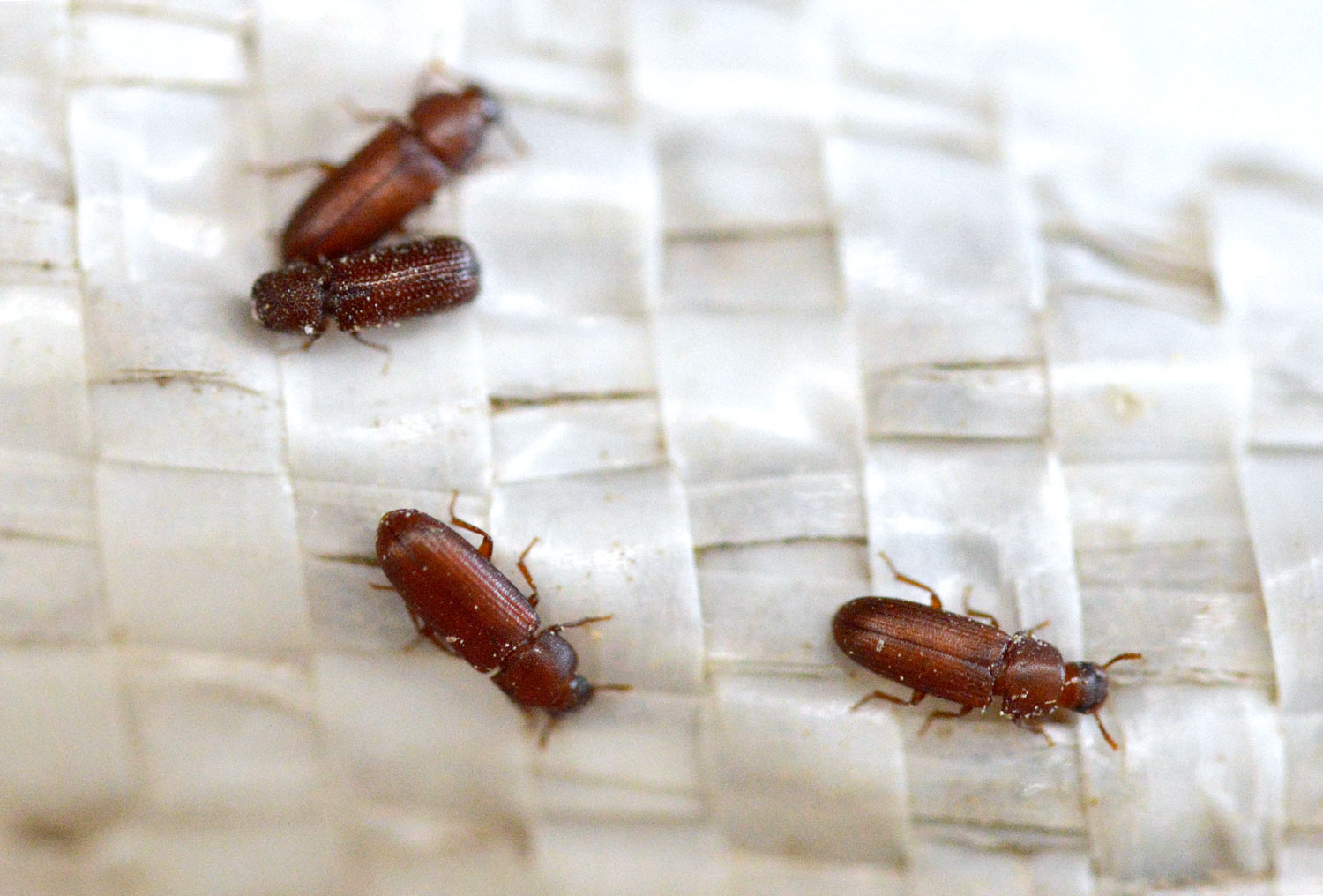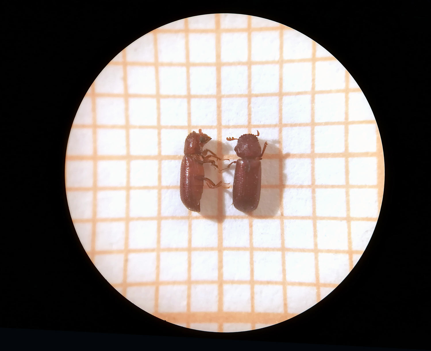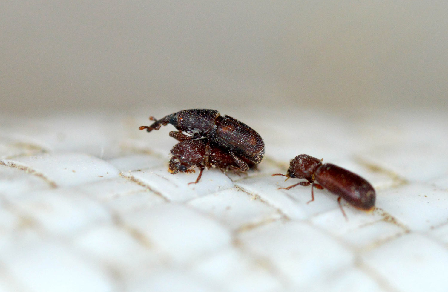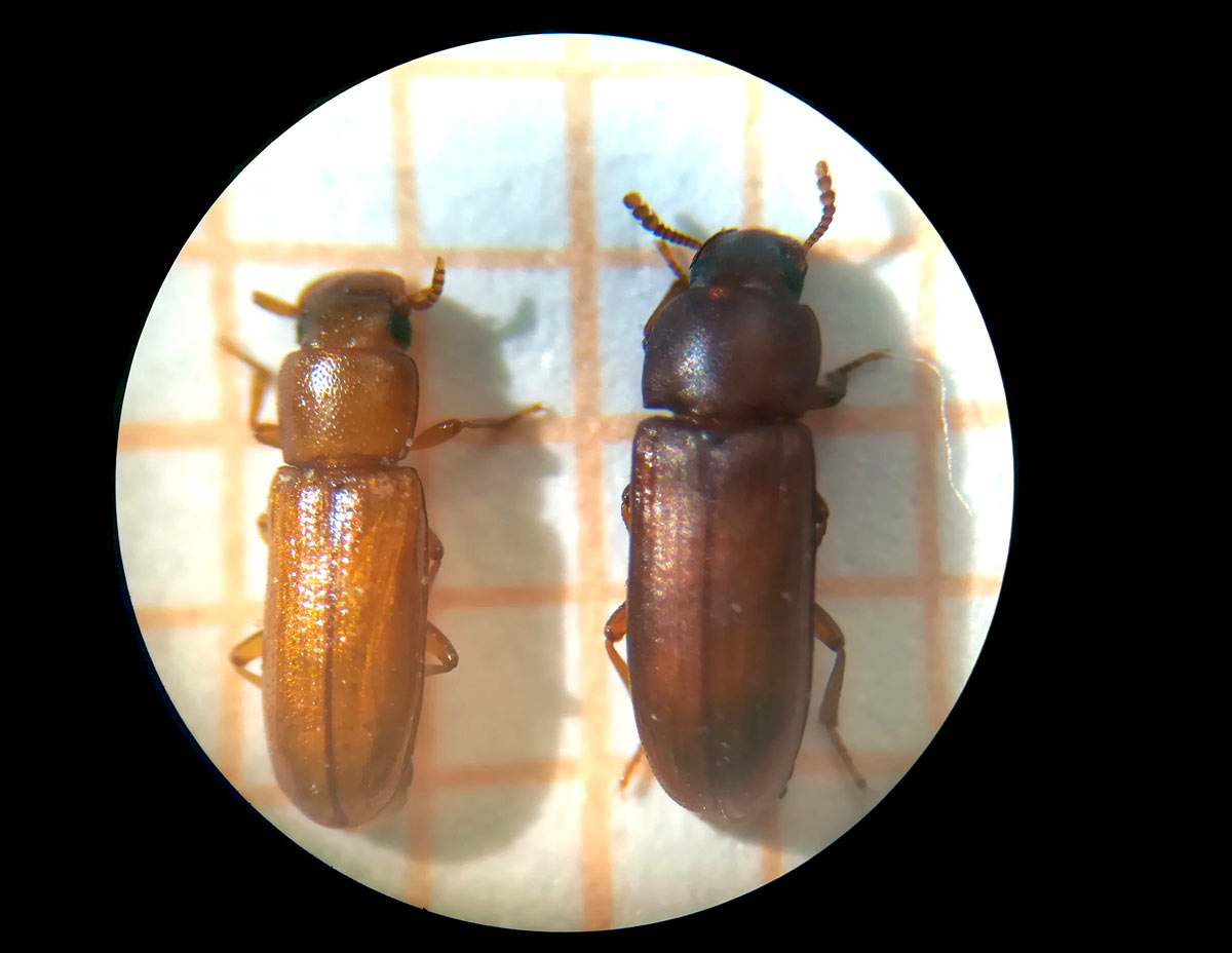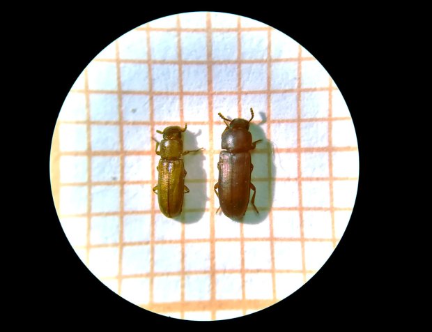 En las 26 imágenes de esta entrada doy cuenta del estado del grano así como de los coleópteros e himenópteros que encontré. Respecto a los coleópteros, encontré dos especies de Tenebrionidae, un Dryophthoridae, un Laemophloeidae y un Bostrichidae. Estas especies son las que siguen: Tribolium castaneum (figuras 16-17), Latheticus oryzae (figuras 16-17), Sitophilus oryzae (figura 18), Cryptolestes (figura 19) y Rhyzopertha dominica (figuras 20-21). Respecto a a Cryptolestes, podría tratarse de C. pusillus, pero no es nada fácil su determinación exacta. Se trata de especies habituales de los granos almacenados cuya distribución es cosmopolita. Destaco que las especies que más abundaban fueron dos. Por un lado, la plaga primaria de los granos Sitophilus oryzae. Y por otro, la plaga secundaria Tribolium castaneum.