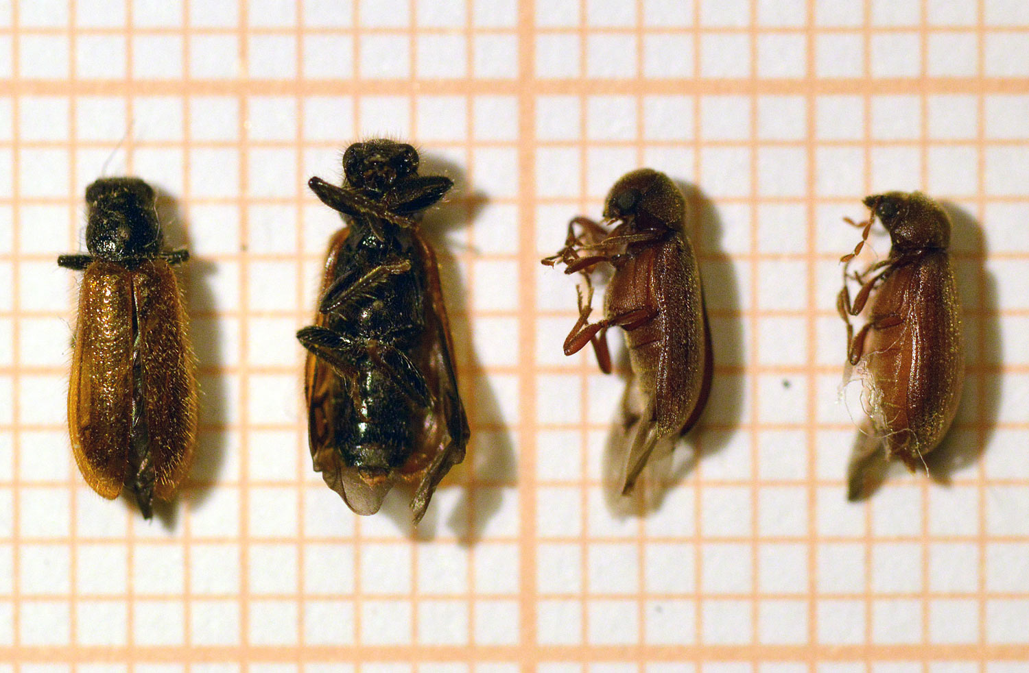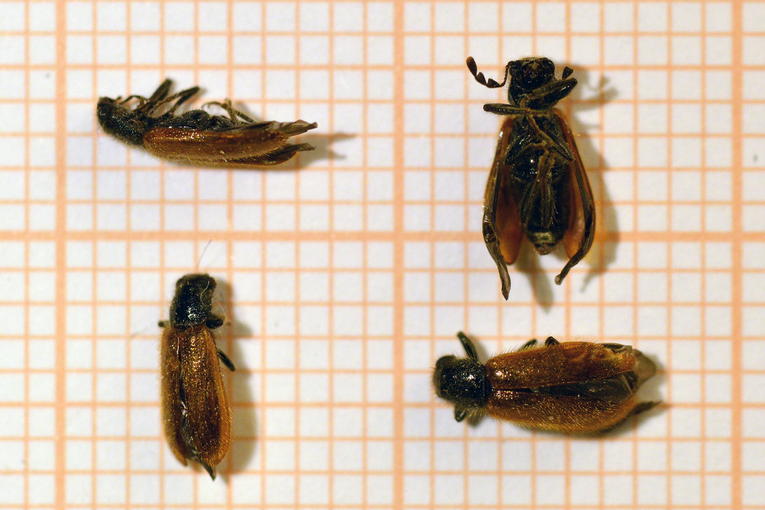 Esta semana llegó a la oficina una muestra muy interesante. Un cliente de la población del Esquirol, Osona (Barcelona), tenía una mesa carcomida. Recogió los coleópteros que encontró sobre la mesa y los metió en un frasco. Cuando miré su contenido, había una decena de individuos que pertenecían a dos especies. Una de las especies la reconocí rápidamente. Se trataba de la carcoma Oligomerus ptilinoides a la cual he dedicado varias entradas por ser una carcoma habitual en esta parte del Mediterráneo y, en especial, abundante en poblaciones cercanas a la costa. Es además peligrosa por ser bastante polífaga y con un ciclo corto de vida de un año. De hecho, es más peligrosa que nuestro Anobium punctatum, una carcoma que se encuentra por toda Europa y es llamada carcoma común.
