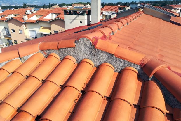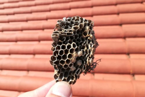 La semana pasada estuvimos realizando un tratamiento contra avispas en el tejado de un edificio situado en Sant Julià de Vilatorta, Osona (Barcelona). Bajo las tejas habían anidado avispas de la especie Polistes dominula (Hyenoptera, Vespidae). Esta situación es algo habitual en esta especie, la cual busca lugares secos y con una gran insolación. Ahora bien, un emplazamiento como este puede ser peligroso para las personas. Este era el caso, ya que los pisos superiores tenían una terraza que daba al tejado.