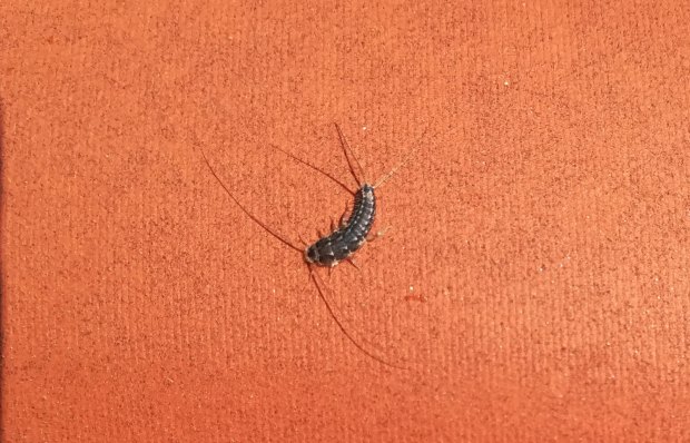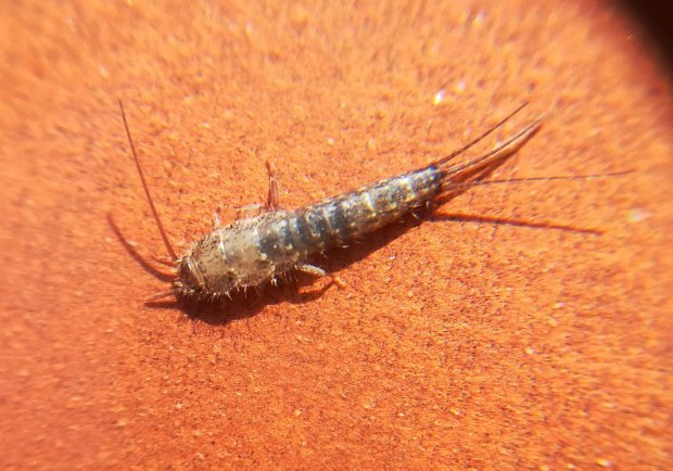 Esta clase de desinsectación no tiene mucho misterio. Consiste en detectar donde están ubicadas las avispas y aplicar un poco de insecticida. Las avispas del género Polistes son bastante sensibles a los insecticidas. Y aplicando poca cantidad eliminas el avispero. Sin embargo, además del organismo diana, el tratamiento afectó a una especie que no esperaba encontrar bajo las tejas de un edificio moderno construido con hormigón armado. En las zonas donde apliqué insecticida, vi salir Zygentoma de la familia Lepismatidae. Y cuando encuentro un zigentomo, suelo pararme para observar. Me acerqué y vi que se trataba de Ctenolepisma lineata. Tomé fotografías y me llevé un par de individuos para asegurarme de la correcta identificación. Utilicé las claves de Rafael Molero et alii para las especies ibéricas del género Ctenolepisma [1]. Y constaté que, en efecto, se trataba de C. lineata. Los dos adultos que recogí eran hembras y tenían tres pares de estilos abdominales.