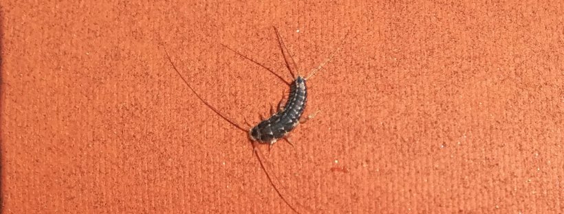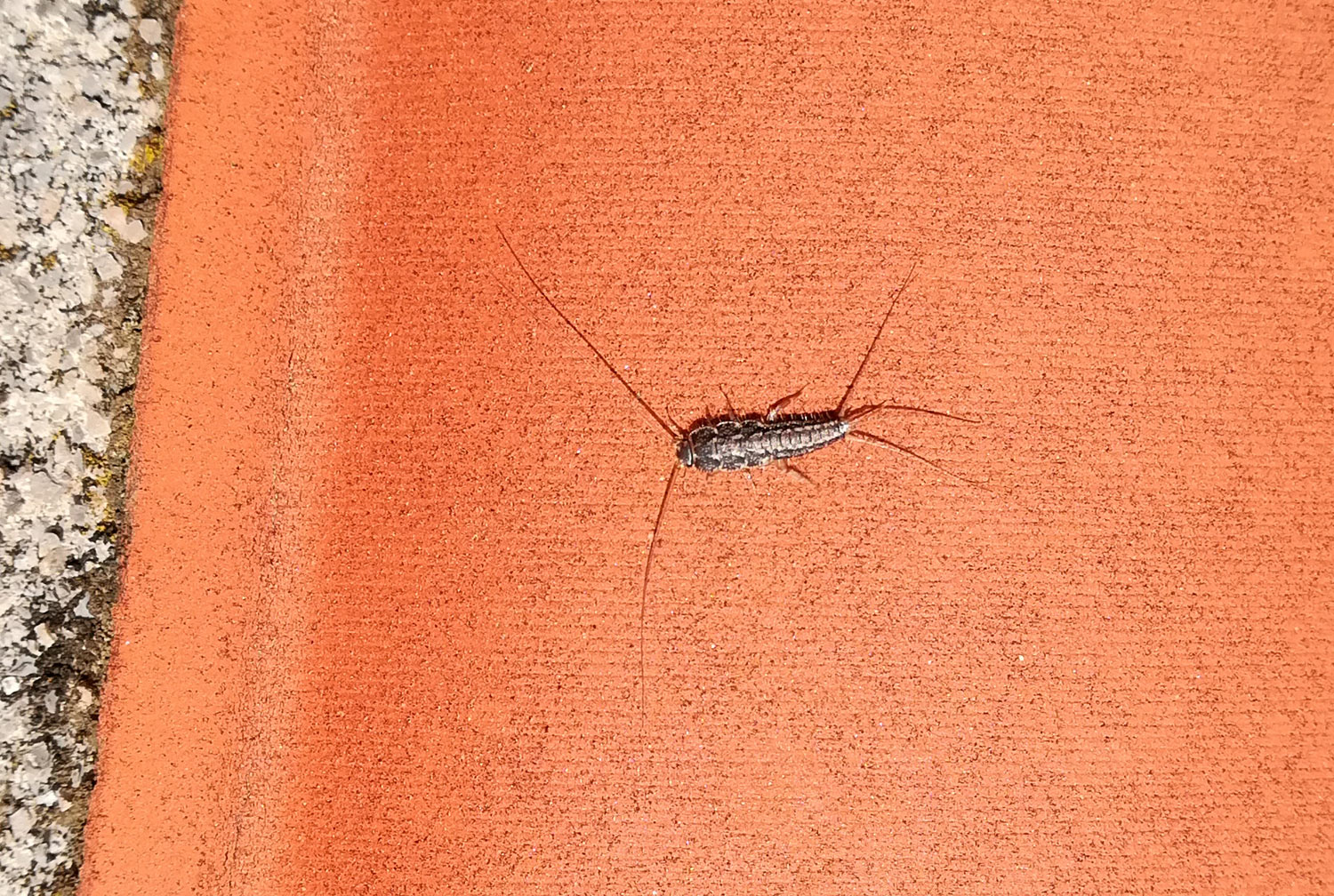 Esta clase de desinsectación no tiene mucho misterio. Consiste en detectar donde están ubicadas las avispas y aplicar un poco de insecticida. Las avispas del género Polistes son bastante sensibles a los insecticidas. Y aplicando poca cantidad eliminas el avispero. Sin embargo, además del organismo diana, el tratamiento afectó a una especie que no esperaba encontrar bajo las tejas de un edificio moderno construido con hormigón armado. En las zonas donde apliqué insecticida, vi salir Zygentoma de la familia Lepismatidae. Y cuando encuentro un zigentomo, suelo pararme para observar. Me acerqué y vi que se trataba de Ctenolepisma lineata. Tomé fotografías y me llevé un par de individuos para asegurarme de la correcta identificación. Utilicé las claves de Rafael Molero et alii para las especies ibéricas del género Ctenolepisma [1]. Y constaté que, en efecto, se trataba de C. lineata. Los dos adultos que recogí eran hembras y tenían tres pares de estilos abdominales.
