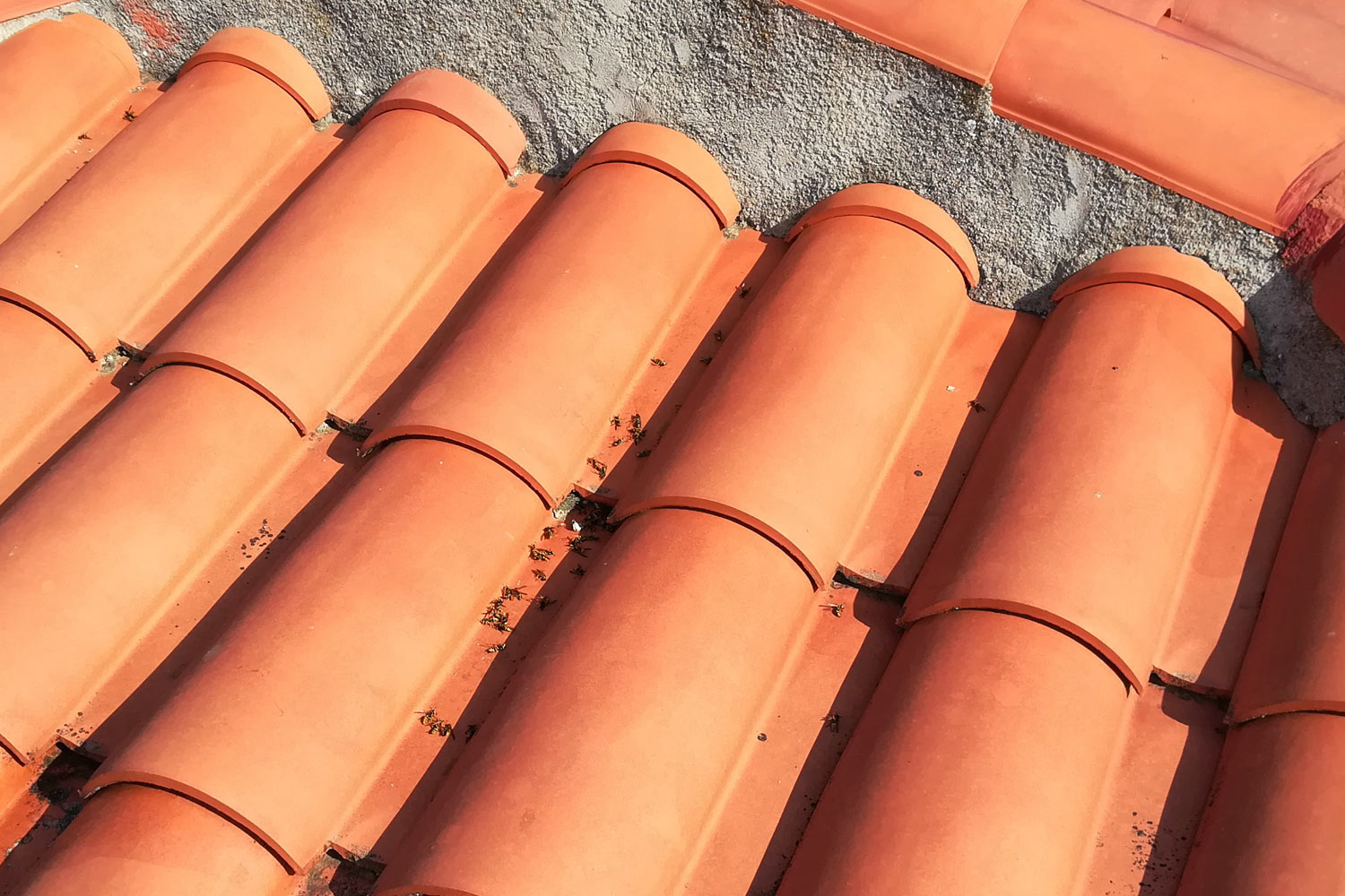 La semana pasada estuvimos realizando un tratamiento contra avispas en el tejado de un edificio situado en Sant Julià de Vilatorta, Osona (Barcelona). Bajo las tejas habían anidado avispas de la especie Polistes dominula (Hyenoptera, Vespidae). Esta situación es algo habitual en esta especie, la cual busca lugares secos y con una gran insolación. Ahora bien, un emplazamiento como este puede ser peligroso para las personas. Este era el caso, ya que los pisos superiores tenían una terraza que daba al tejado.