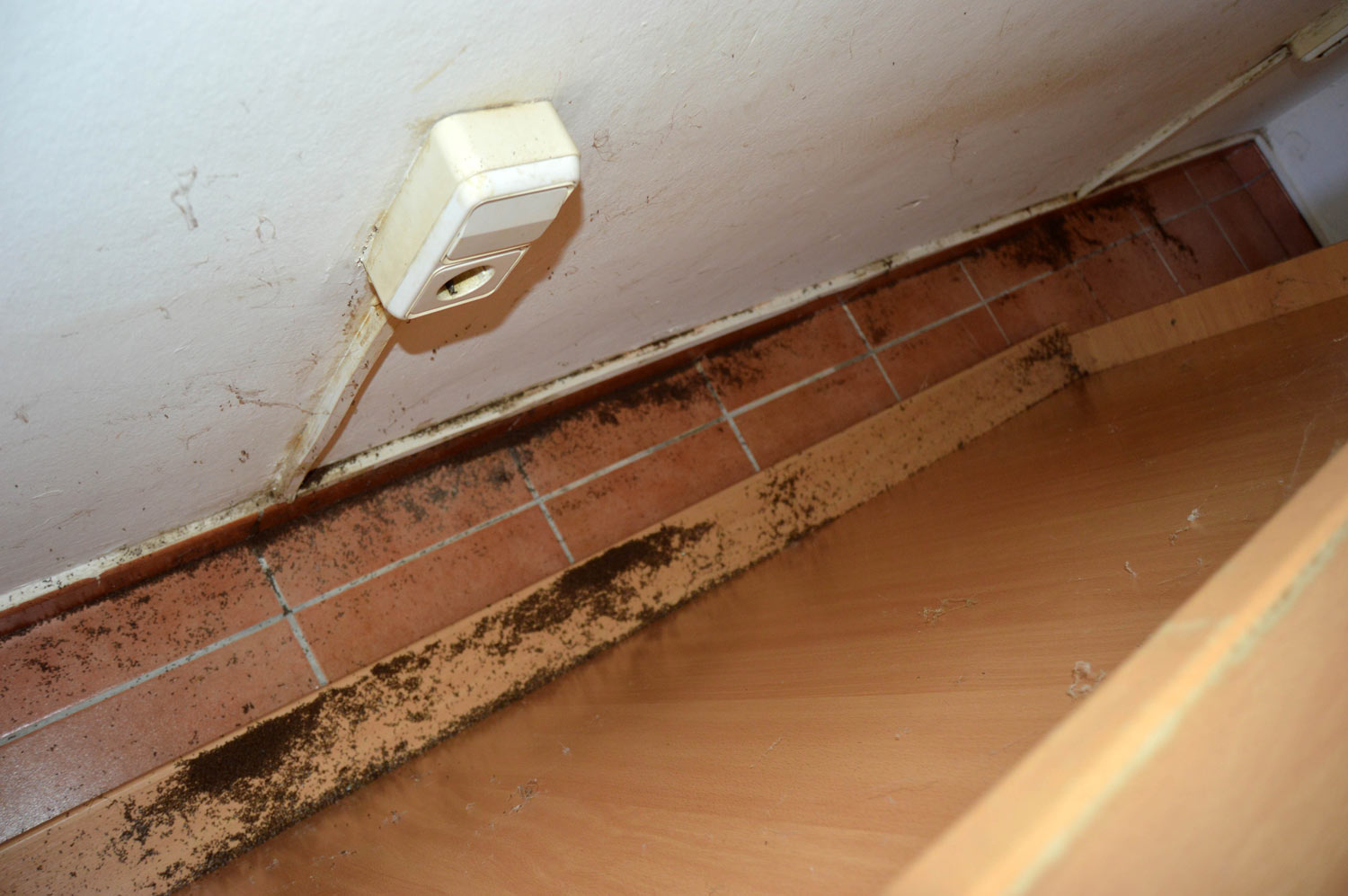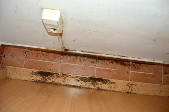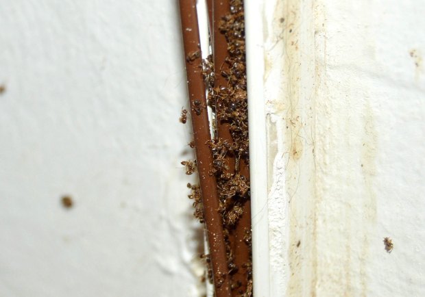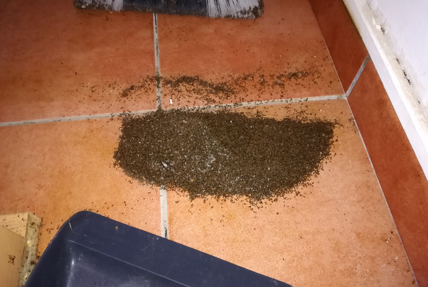 Fig 5. Acumulación de obreras muertas de Lasius neglectus detrás del cabecero del dormitorio./ C. Pradera 09-2019