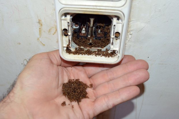 Fig 18. Obreras muertas de Lasius neglectus en interior de un enchufe de la cocina./ C. Pradera 09-2019