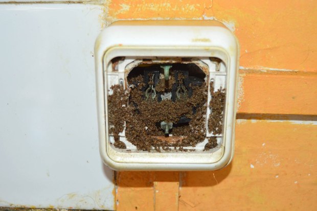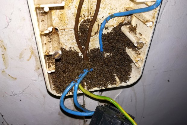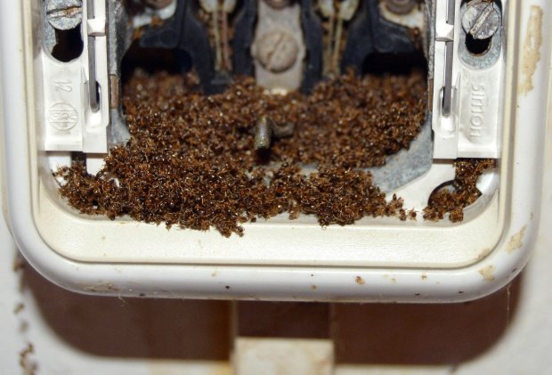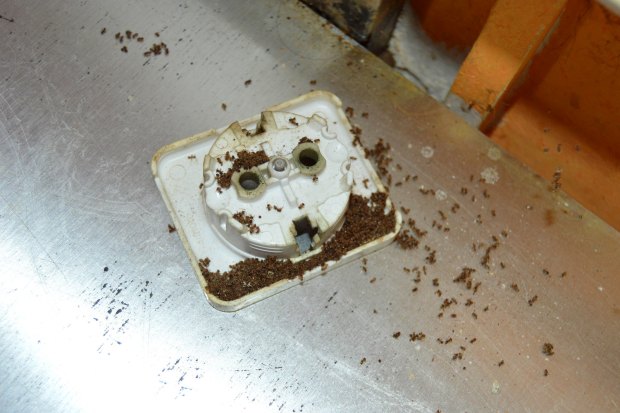 Fig 19. Obreras muertas de Lasius neglectus en interior de un enchufe de la cocina./ C. Pradera 09-2019