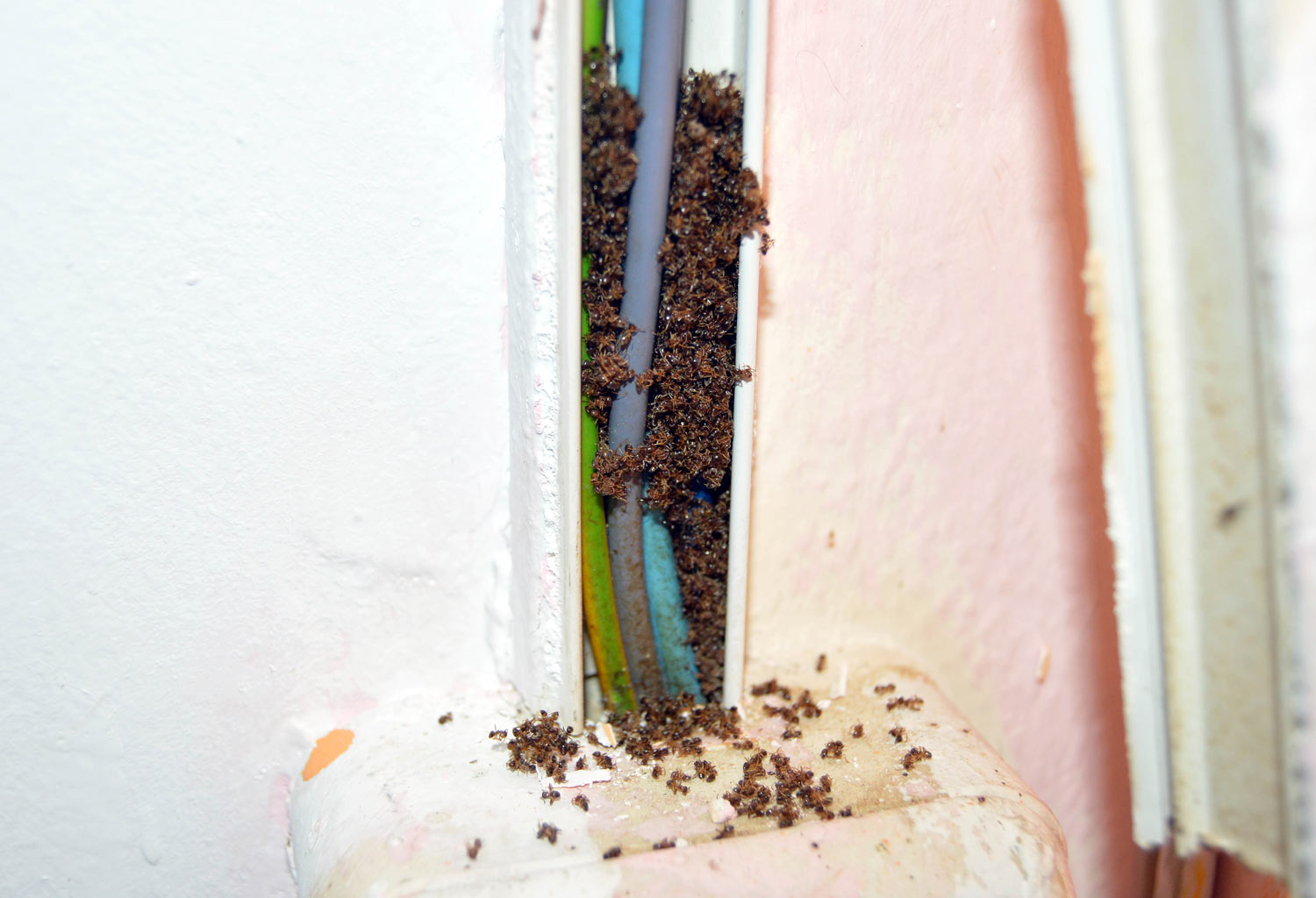 Fig 15. Obreras muertas de Lasius neglectus en interior de regleta de cableado eléctrico de la sala de estar./ C. Pradera 09-2019