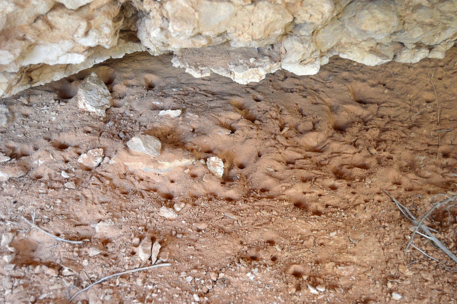 Fig 23. Hueco en la roca con embudos de vermileónido en la Sierra del Montsant, Tarragona./ C. Pradera 05-2019