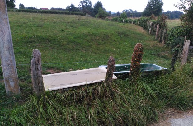 Con ambos trofeos, decidí regresar al coche y continuar por la zona a la espera de encontrar más mosquitos. Sin embargo, no encontré más adultos de las especies mencionadas. Sí en cambio, encontré adultos y larvas de otras más comunes como Culex pipiens y Culiseta longiareolata. Estas especies las encontré en un par de bañeras dispuestas en los márgenes de prados a modo de abrevaderos (figuras 4 y 5). El ganado más abundante en la zona son vacas (figura 6). También hay corderos y cabras. En general, es una zona proclive para la presencia de mosquitos que se alimenten de sangre de mamíferos, como las dos especies que encontré primero. Hay multitud de lugares donde el agua se puede estancar desde recipientes naturales como huecos en árboles hasta artificiales, que son muchos y abundantes (figura 7). Además, hay muchos animales de los que se pueden alimentar que se encuentran a tiro de los mosquitos como personas, vacas y corderos. Es importante la humanización de la zona, típica de la cornisa cantábrica. La población vive de forma diseminada ocupando gran parte del territorio.
