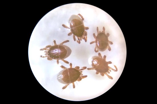 Fig 4. Ácaros del género Poecilochirus encontrados sobre Nicrophorus vespilloides./ C. Pradera 08-2019
