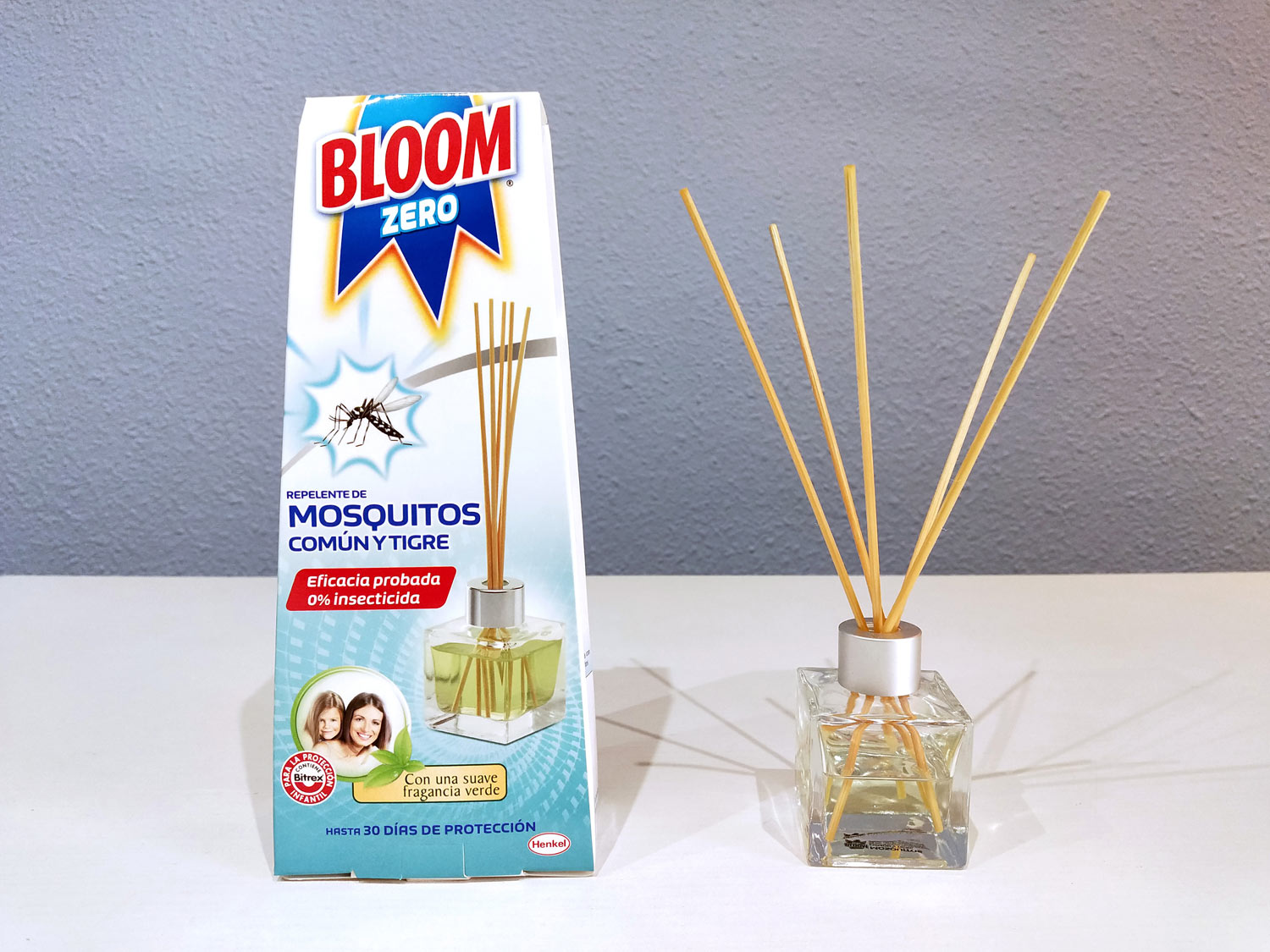 El producto está bien pensado y su presentación es atractiva con un envoltorio interesante. Su uso es sencillo. Se retira el tapón del frasco de 40 ml y se introducen cinco varillas que actúan como difusores y evaporadores del líquido repelente. Este sistema de difusión no es nuevo y es empleado en productos que sirven para aromatizar espacios o enmascarar olores. Bloom Zero tiene unas instrucciones de aplicación bien definidas. Está pensado para librar de mosquitos un espacio de 18 m2 durante 30 días. Considero que este producto es muy superior a los difusores clásicos de pastilla o líquido para evaporadores eléctricos. Visto el espacio que cubre una unidad, es posible que sean necesarios varios en una vivienda grande. Y es importante situarlos estratégicamente. Por otra parte, las pruebas de eficacia han sido realizadas con mosquito tigre y mosquito común (Culex pipiens). Sin embargo, lo que bien funciona con estas dos especies de culícido, no dudo que funcione con otras.