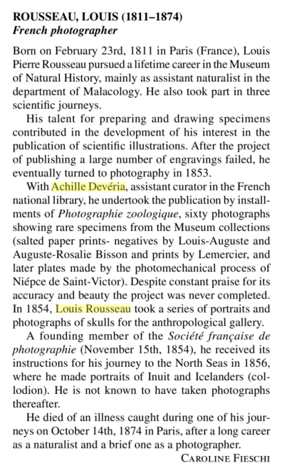 [2] Louis Rousseau & Achille Devéria. 1853. Photographie Zoologique ou représentation des animaux rares des Collections du Muséum d’Histoire Naturelle. París.