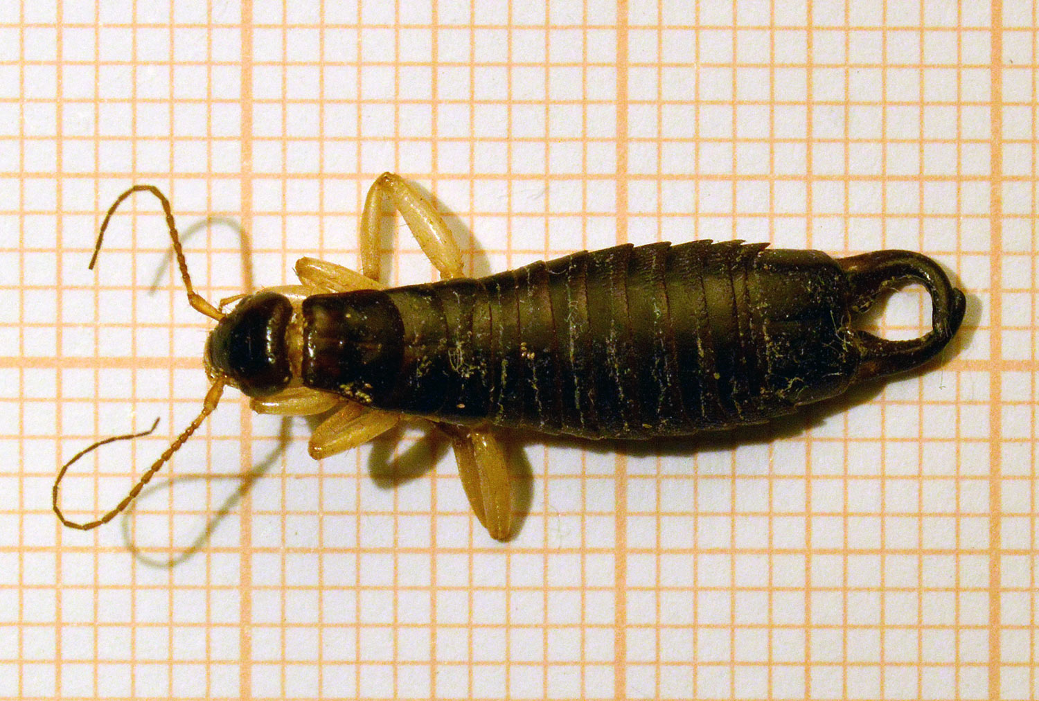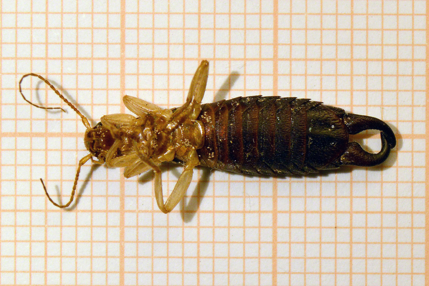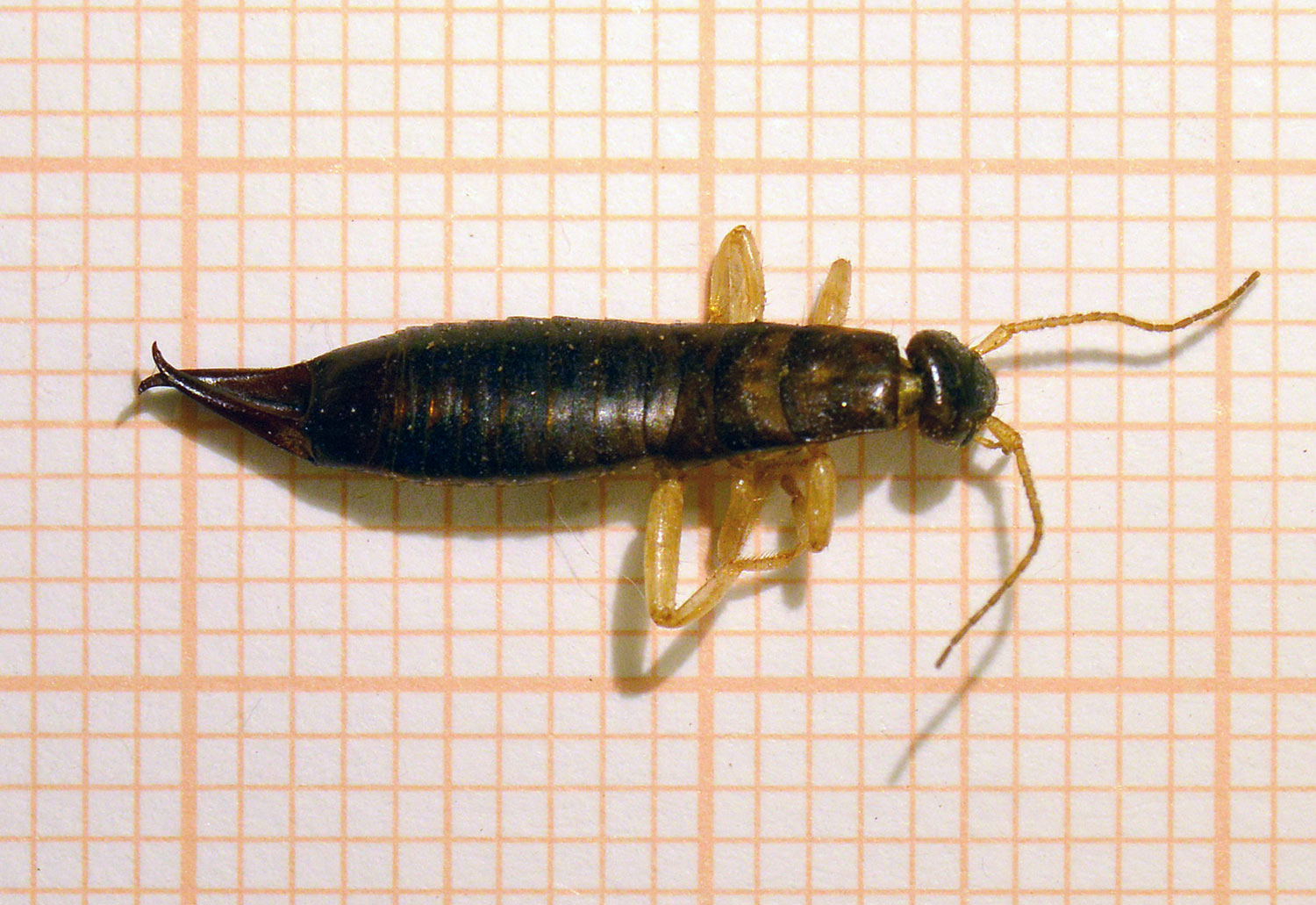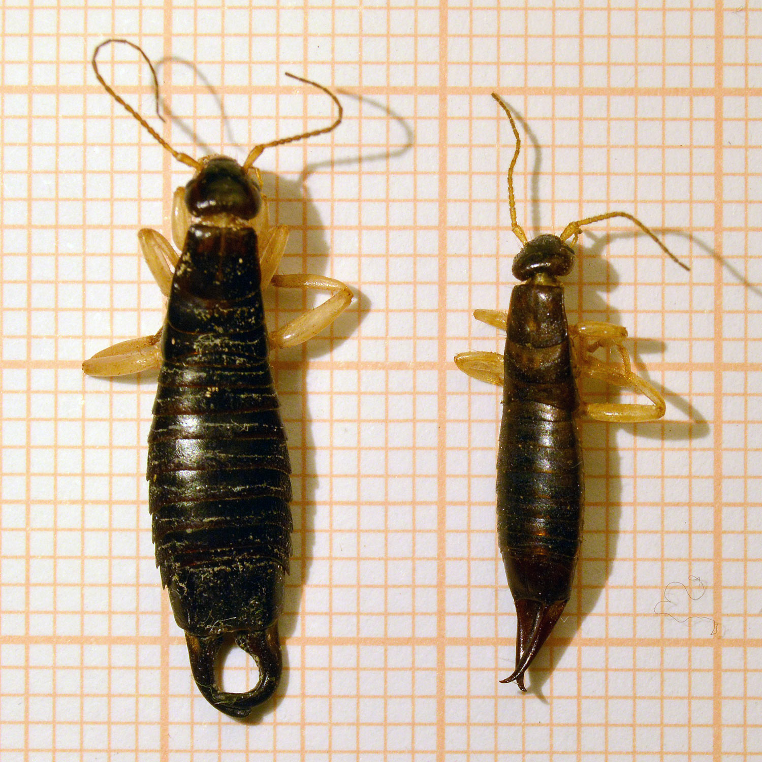Hace un mes encontré en un cliente situado en el barrio de la Barceloneta un macho de tijereta que supuse de la especie Anisolabis maritima. Pero no ha sido hasta esta mañana, cuando he regresado al mismo lugar, que he podido recolectar diversos individuos juveniles y adultos y asegurar que se trataba de esta especie. En las imágenes se puede ver un macho y una hembra adultos.