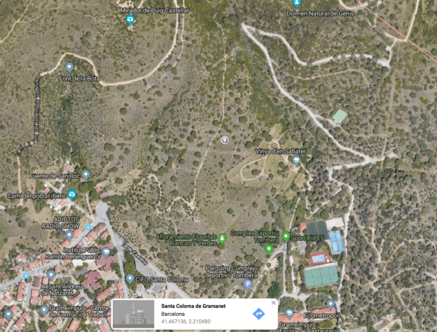 En la imagen número 5, se pueden ver dos hembras de Hyalomma. La de mayor tamaño es la del Ebro y, la menor, es la encontrada cerca de casa. Ambas especies tienen una generación anual y una gran capacidad de adaptación. Adultos y larvas están muy activos durante la primavera y el verano. En la Península Ibérica tiene mayor distribución que H. lusitanicum, la cual se encuentra en el sur de Portugal y en las zonas centro y suroeste de España ligadas a zonas con abundancia de conejos [1]. En la imagen número 12 se puede ver indicado en un mapa de Google Maps la geolocalización donde encontré el individuo del Ebro. Y en la imagen 13, indico el lugar donde cada año encuentro garrapatas H. lusitanicum en la Serralada de Marian. Se trata de una zona periurbana donde abundan los conejos y, en menor medida, jabalís.
