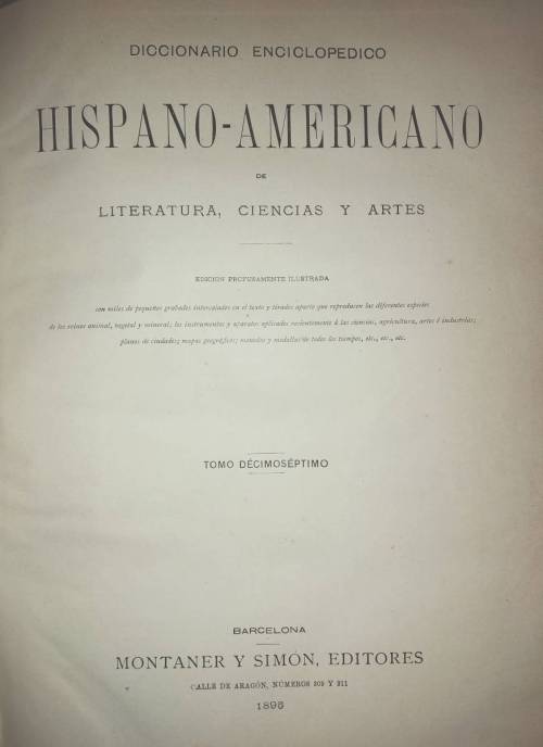 Fig 1. Primera página del tomo XVII del Diccionario Enciclopédico Hispano-Americano./ C. Pradera 02-2020