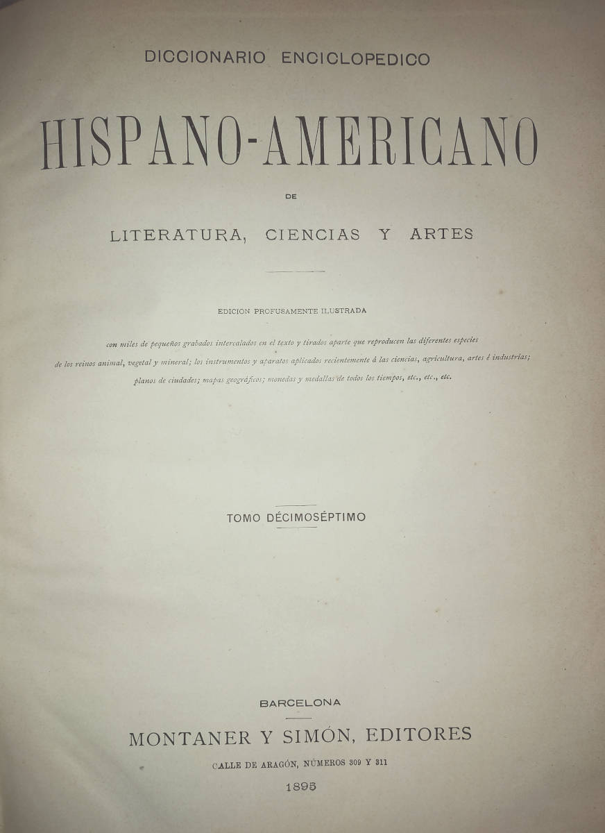 Fig 1. Primera página del tomo XVII del Diccionario Enciclopédico Hispano-Americano./ C. Pradera 02-2020