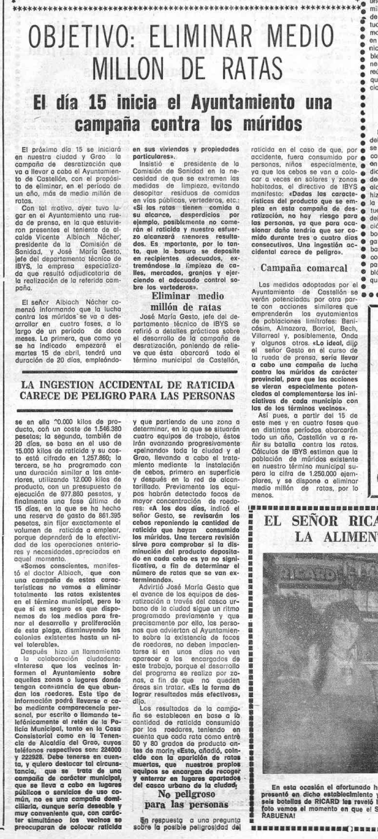 castellon de la plana mediterraneo sabado 12 de abril de 1980 Previous Next Publicado 22/03/2020 en 780 × 1730 en Datos numéricos sobre antiguas desratizaciones en ciudades y evolución de los planes de control