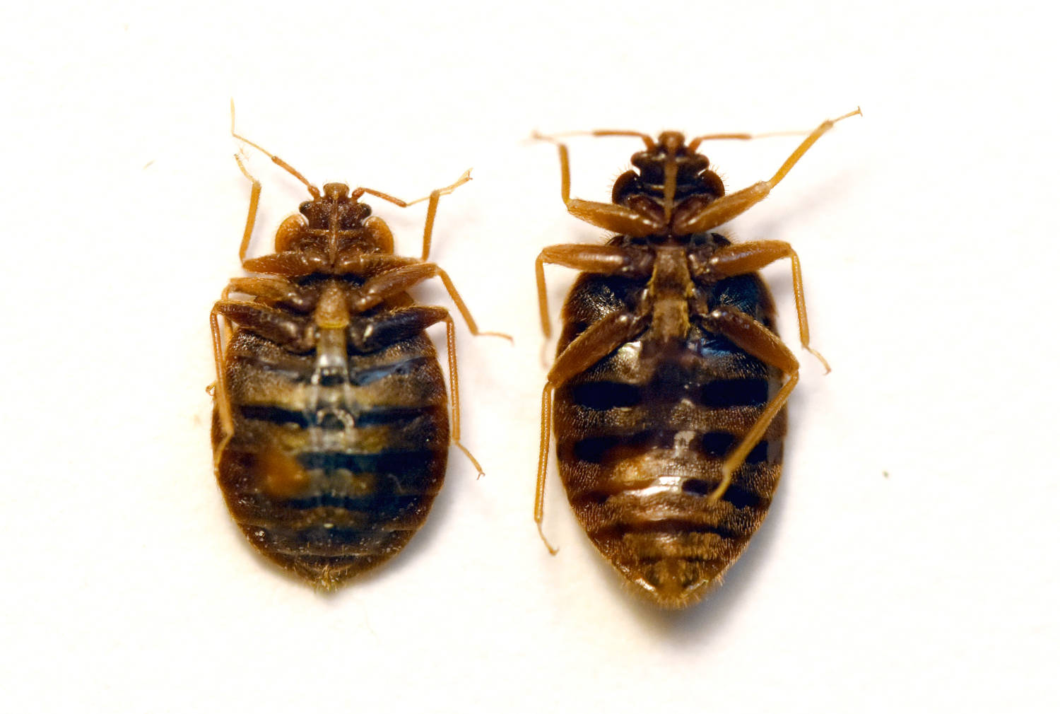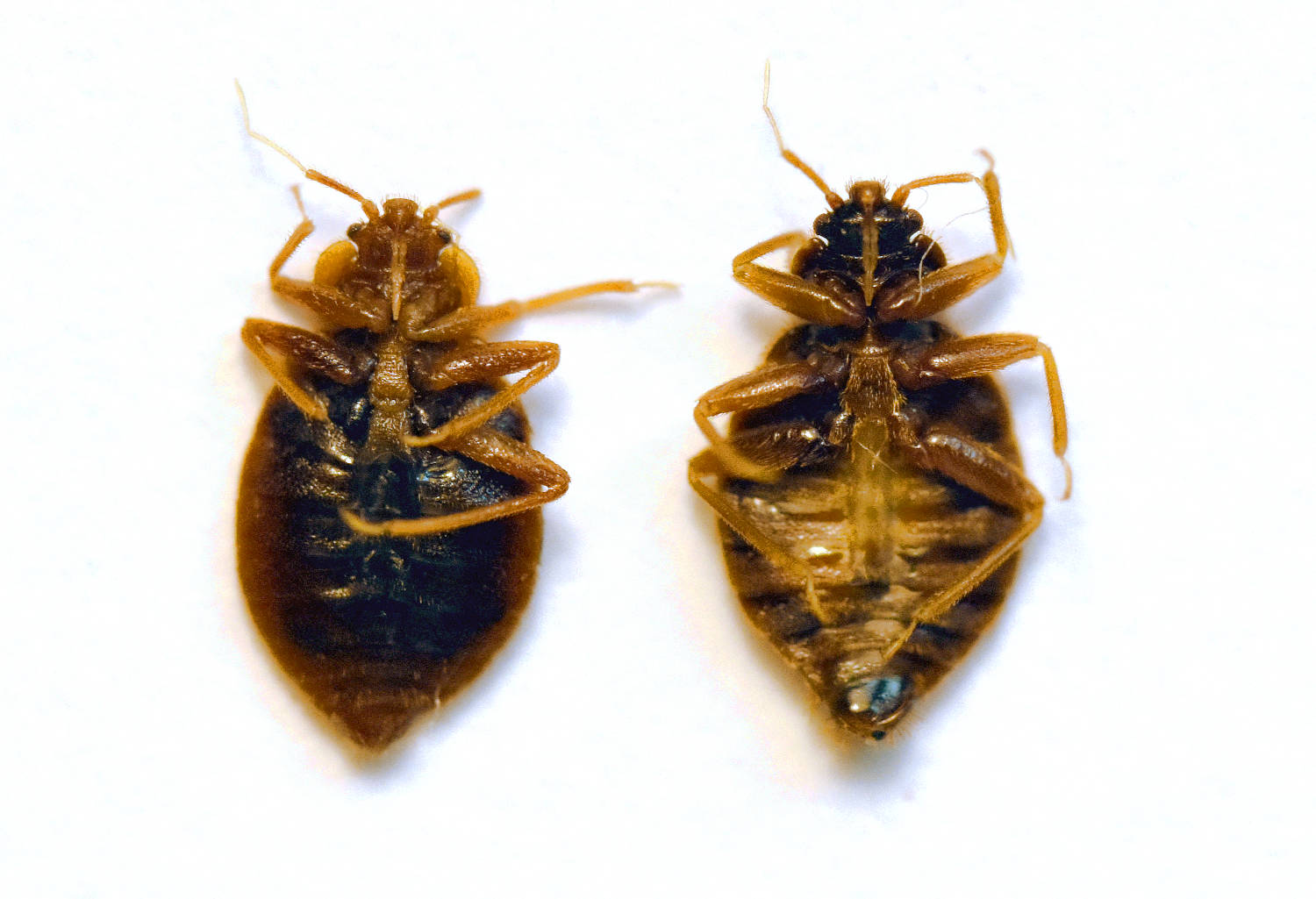Fig 3. Vista ventral de hembras de C. lectularius (izquierda) y de C. hemipterus (derecha)./ C. Pradera 04-2020