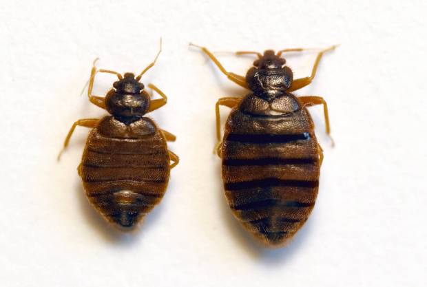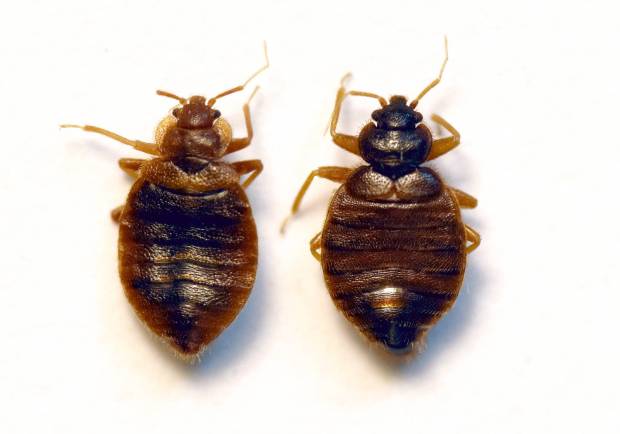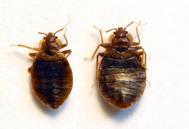 Fig 8. Vista dorsal de macho (izquierda) y hembra (derecha) de C. lectularius./ C. Pradera 04-2020