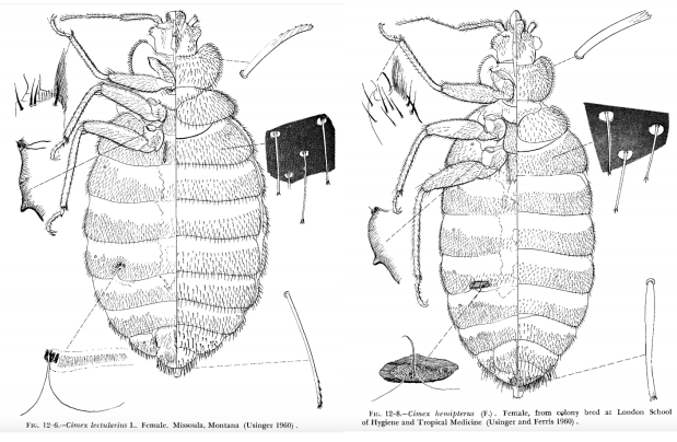 Fig 5. Dibujos de hembras de C. lectularius y de C. hemipterus según Robert L. Usinger (1966).