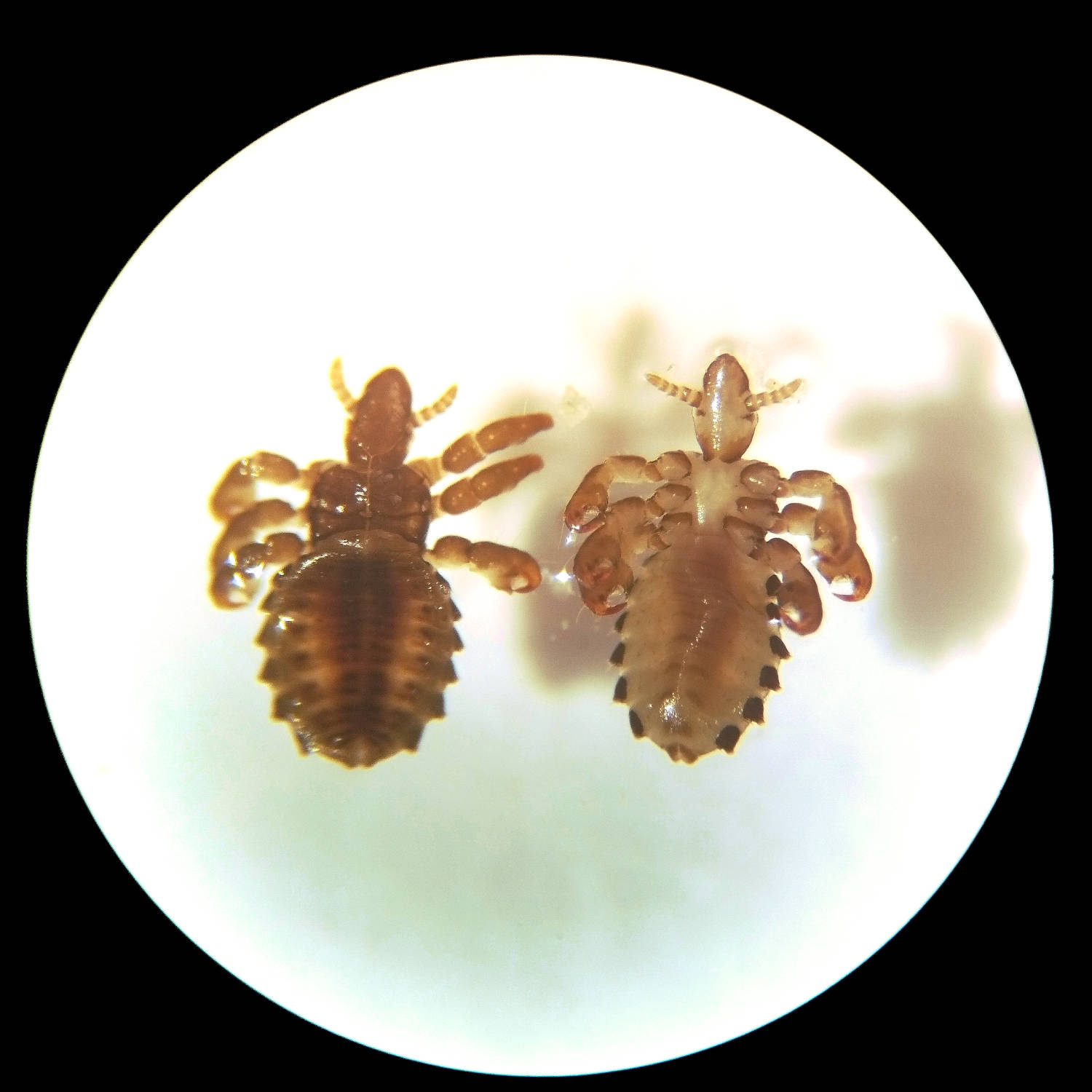 Encuentro muy interesantes los animales de vida parásita. ¡Hay tantas especies por conocer! Recientemente, gracias a Xavier Juliol de Banyoles he conseguido una muestra de piojos del género Haematopinus que parasita a las vacas. Meses atrás me comentó que el veterinario había detectado piojos en algunas vacas. Al oír esto, le pedí si podía recolectar algunos individuos. Nunca había visto un piojo de vaca. Le dejé un frasco con alcohol. Y un día que se acordó de mí, recolectó cuatro individuos de la misma especie (figura 2).