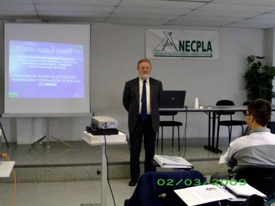Hacía de comercial, pero también hice las funciones de Director Técnico. Entonces, en Madrid, era necesario tener un licenciado en la empresa. En ANECPLA, de la cual José Antonio fue fundador y estuvo en la Junta Directiva, exigieron que había que tener un licenciado además del carnet cualificado. Estando yo, nada más entrar, en el mes de mayo José Antonio me dice que ANECPLA va a hacer el primer curso de aplicador de nivel básico y cualificado que se va a realizar en España y me preguntó si me atrevía a dar clases. Yo le dije que sí, que yo venía del mundo de la enseñanza desde que había acabado la carrera. Le pregunté qué había que dar. Y me dio un material para preparar las clases. Y yo fui unos de los profesores junto con Felipe Antón, que era veterinario, y con otra persona, veterinario también, que trabajaba en INTI. Si no recuerdo mal, el primer curso fue impartido en mayo de 1994. Yo me sentí muy halagado por la proposición y cogí todo el temario de productos químicos, formulaciones, etc. Pero puedes imaginar mi miedo escénico al entrar en clase y encontrarme a 25 compañeros, que el que menos experiencia tenía era de 15 años. En el curso conocí a un montón de personas. Y conocí a personas que llevaban toda su vida en el sector.