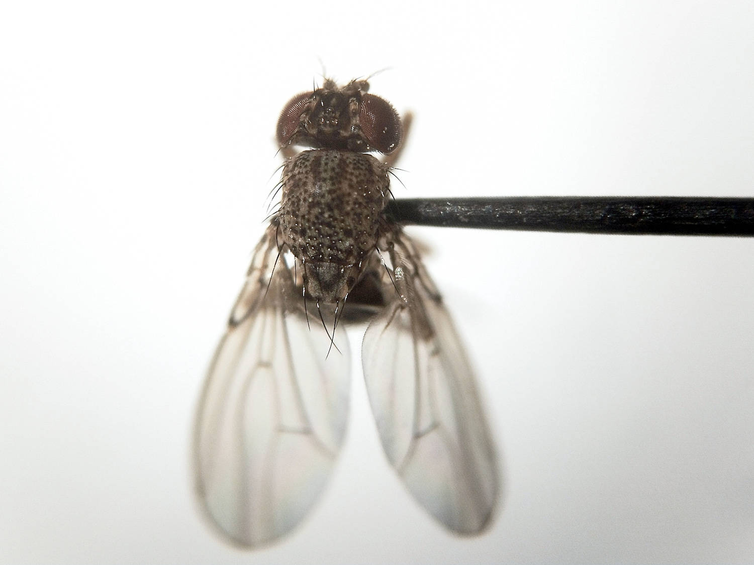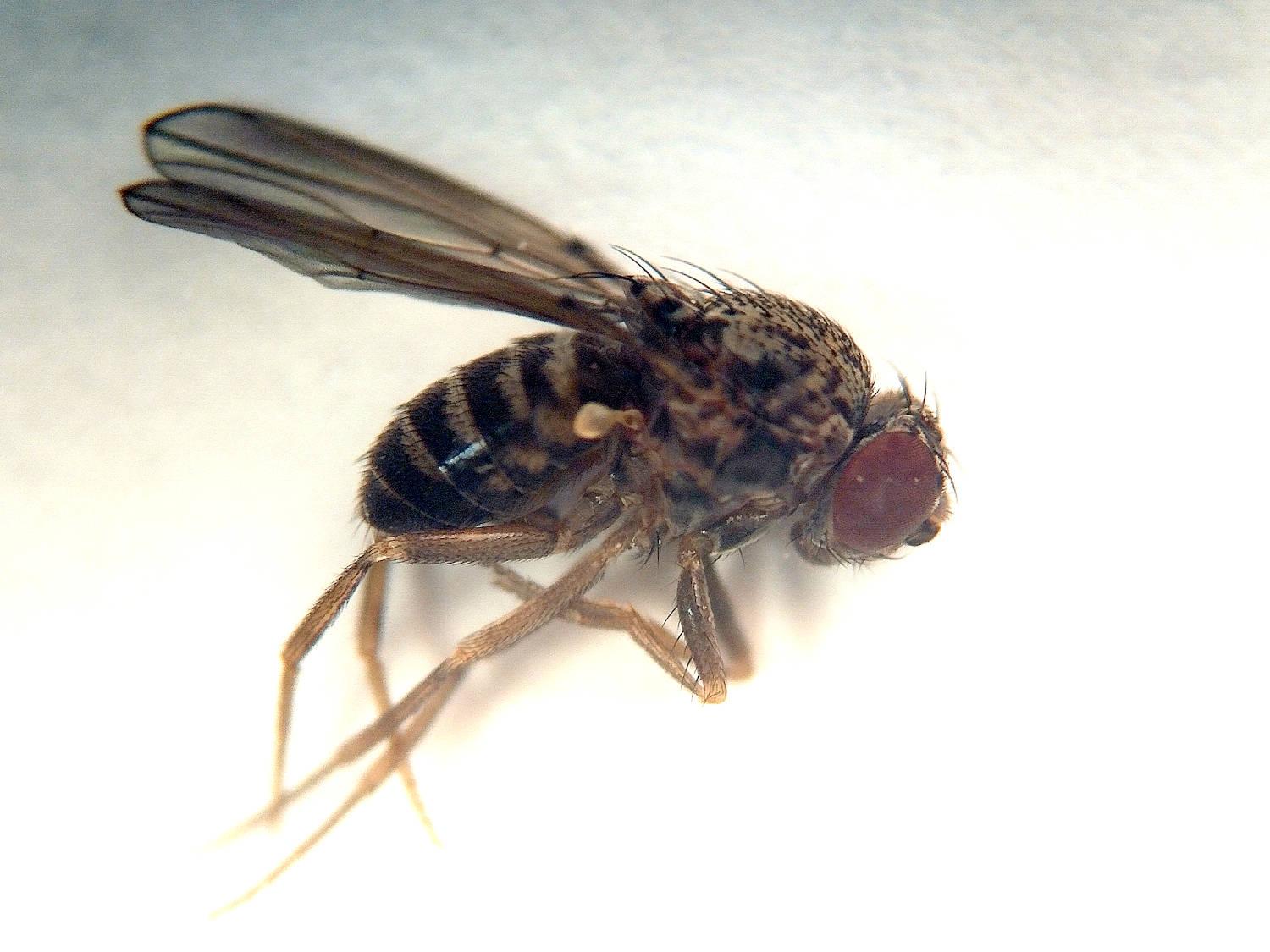 En la Península Ibérica la mayor parte de especies del género Drosophila pertenecen a dos subgéneros: Drosophila y Sophophora [1]. Según mi experiencia, en la zona en la que vivo, el noreste peninsular, la especie más abundante en interiores es Drosophila (Drosophila) repleta. Y es justo esta especie la que encuentro en granjas porcinas. Por otra parte, a pesar de lo que se dice en algunos manuales de control de plagas, las especies del subgénero Sophophora como Drosophila (Sophophora) melanogaster son escasas. Por lo menos, esto es lo que sucede en mi zona donde aparecen puntualmente [2]. Y además, no causan las infestaciones del nivel de D. repleta.