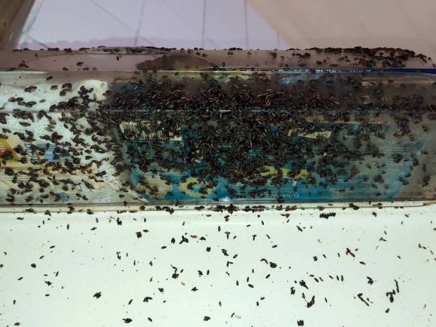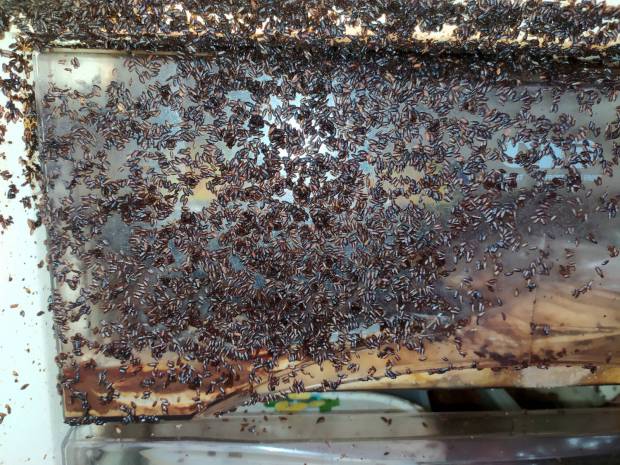 Fig 2. Nevera llena de pupas de mosca Phoridae./ C. Pradera 06-2020