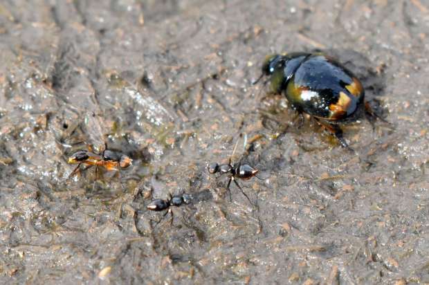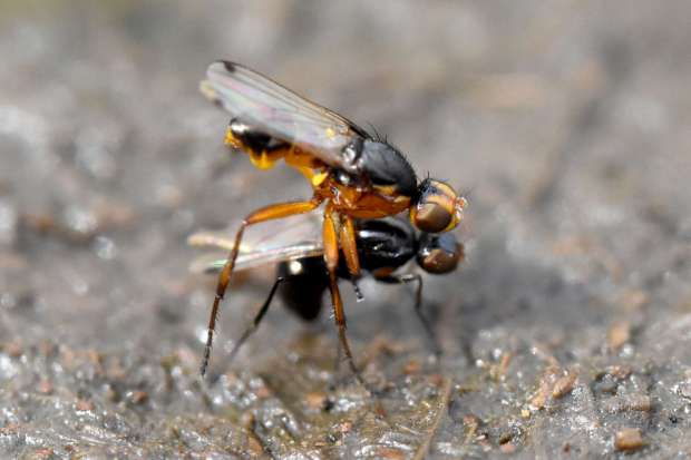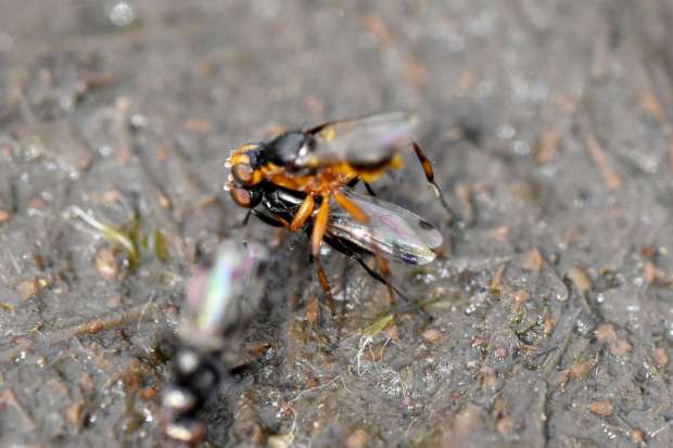 Fig 12. Tres especies: Sepsis thoracica, Sepsis thoracica y Sphaeridium scarabaeoides./ C. Pradera 07-2020