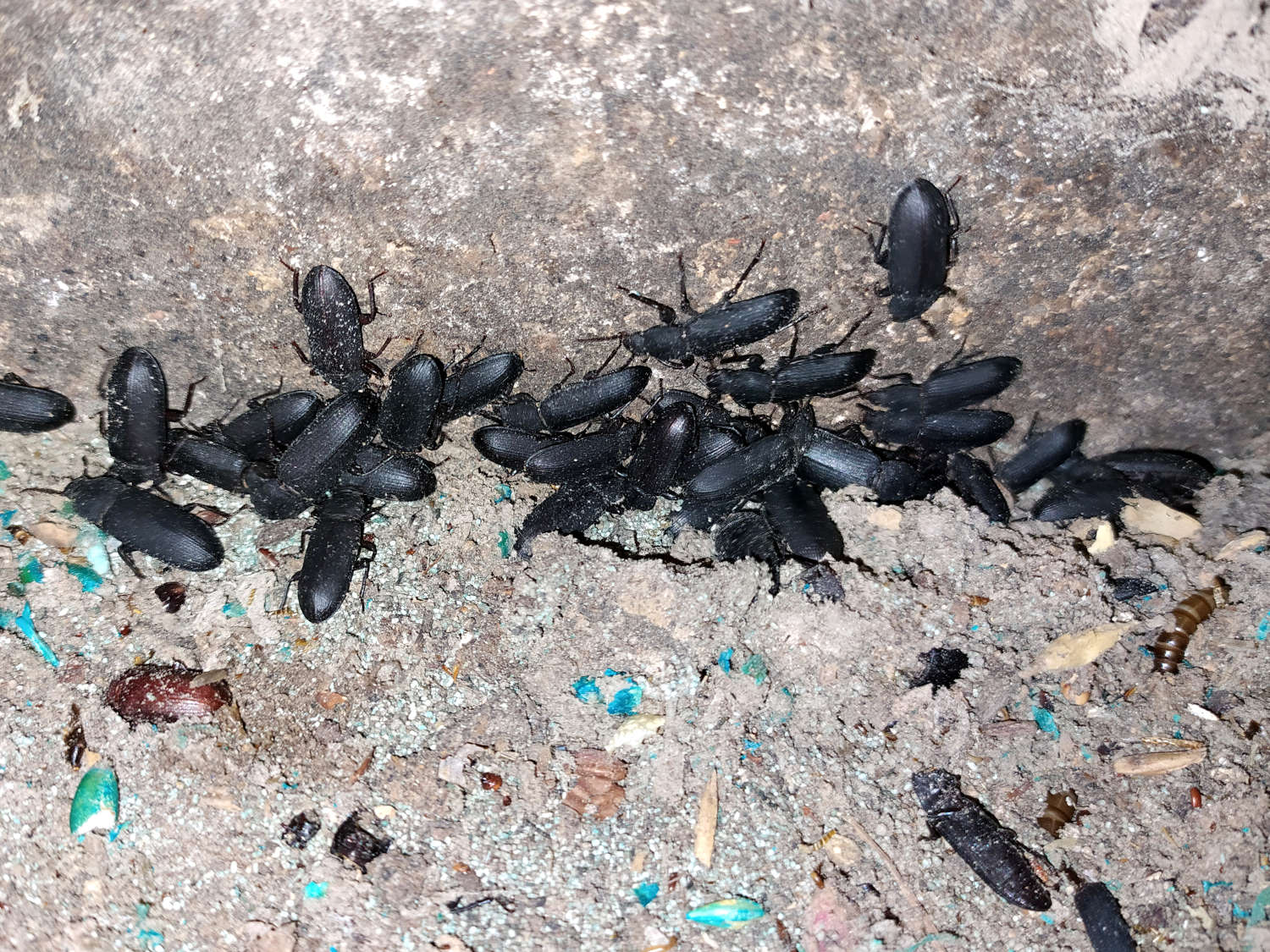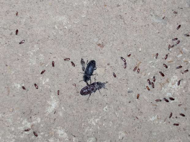 Fig 15. Detrás del portacebos de la figura 13 había Tenebrio obcurus y, en menor medida, Tenebrio molitor./ C. Pradera 08-2020