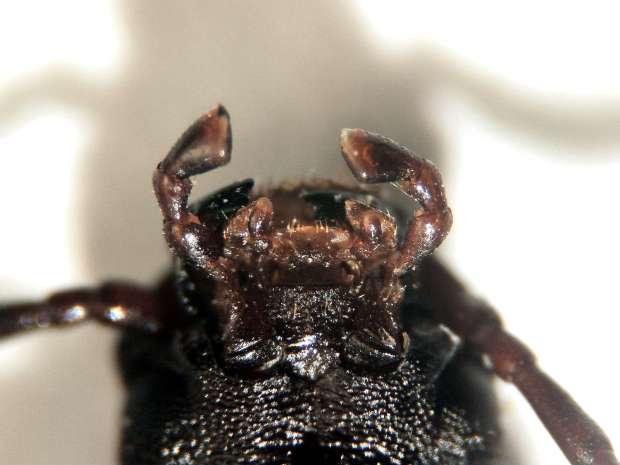 Ahora bien, observando varios adultos de cada especie, he visto que se pueden utilizar los palpos para diferenciar de una manera bastante clara cada especie. En concreto, destaca el palpo maxilar. En T. molitor es delgado e igual de ancho en toda su longitud (figuras 5-6). En cambio, en T. obscurus es grueso y el tercer artejo es mas grueso que los anteriores (figuras 7-8). Creo que los palpos permiten realizar bien la identificación. Por otro lado, se pueden utilizar las antenas, aunque es menos claro. En T. molitor son más delgadas y hay un engrosamiento de los artejos finales que además no son romos. En cambio, en T. obscurus los artejos son más gruesos y se mantienen más o menos igual de anchos en todo su recorrido. Y los artejos finales son más redondeados (figuras 3 y 4). En cuanto al tamaño, ambas especies son parecidas.