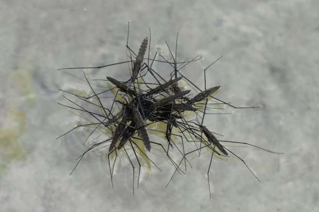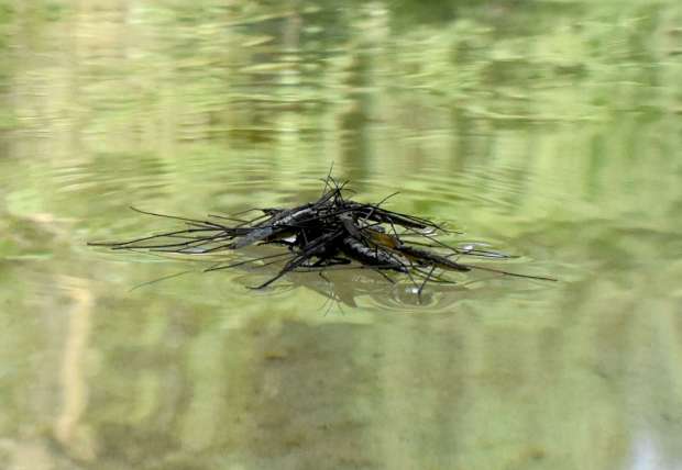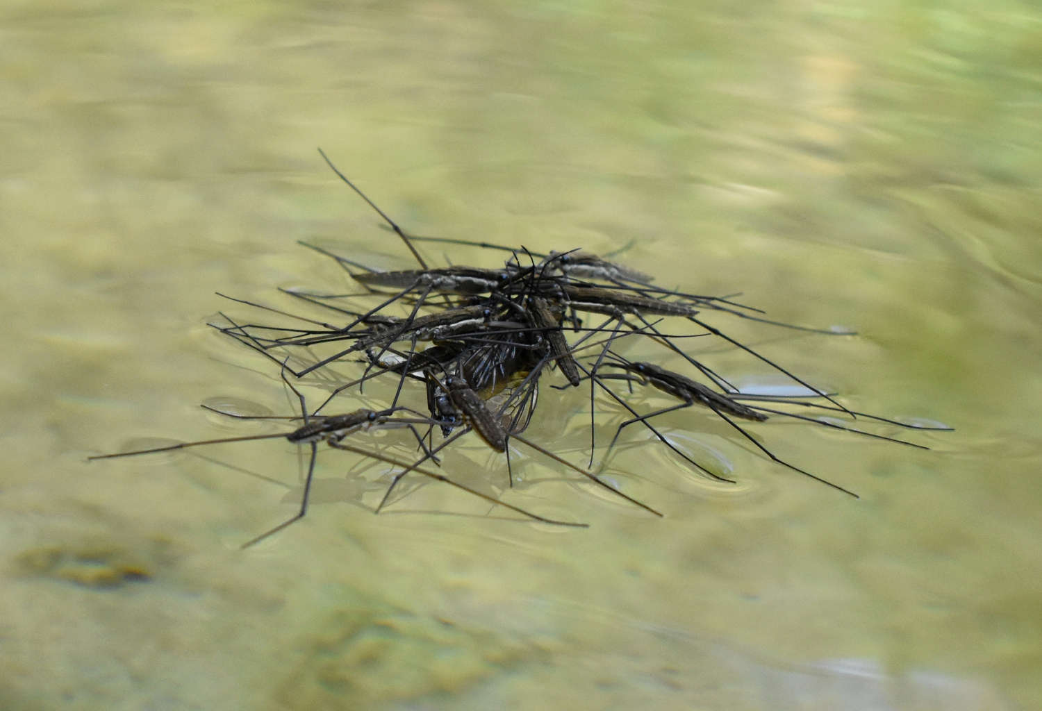 [1] C. Pradera. 20-09-2015. Zapatero Aquarius paludum (Heteroptera, Gerridae) en el Ebro a la altura de Tivenys. El desinsectador y desratizador.