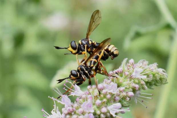 Fig 3. Pareja de Conops flavipes en Caldes de Boí./ C. Pradera 08-2020