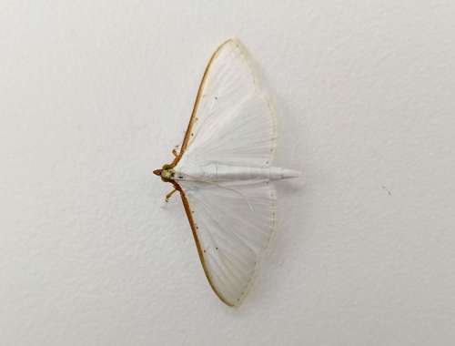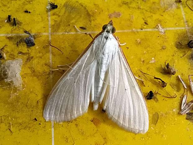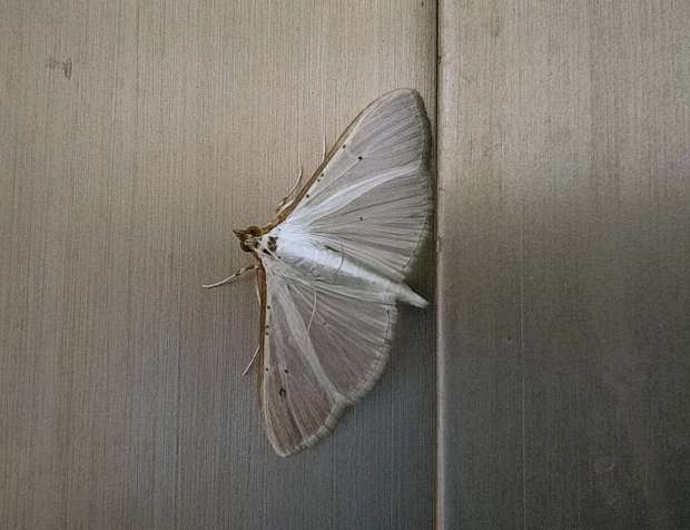 Esta semana me he encontrado con el lepidóptero Palpita vitrealis [1], una interesante mariposa nocturna y migradora en la que no había reparado. Encontré individuos atrapados en láminas adhesivas de aparatos insectocaptores y también libres. Recibe el nombre de glifodes o palomilla del jazmín. Una primera visión me recordó otra especie de la familia Crambidae que ha invadido nuestros montes como es Cydalima perspectalis, la polilla del boj. De hecho, en otras planchas también encontré esta especie. El lugar donde la encontré es un edificio de Barcelona que se encuentra cerca del mar donde suelo encontrar mariposas con una amplia capacidad de vuelo.