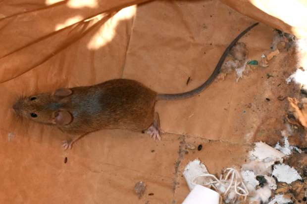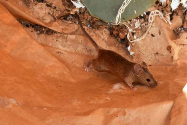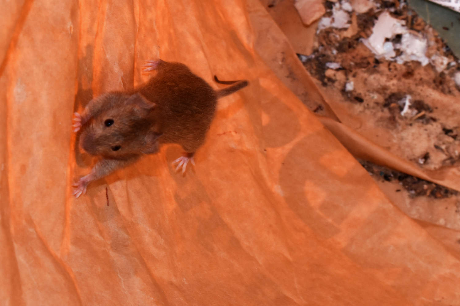 Fig 4. Ratón doméstico (Mus musculus) en un saco de papel./ C. Pradera 05-2020
