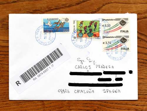 He adquirido una serie de tres interesantes sellos dedicados a las termitas que ilustran de alguna manera su biología (figura 1). Se trata de una serie impresa en 2003 para su circulación en Somalia. Los adquirí a un coleccionista italiano llamado Luigi Zangoni a través de Ebay. He de agradecer el detalle de que me llegaran en un sobre con sellos y timbres italianos (figura 2). Esto es un gusto por la belleza que aporta un sello y más si te gusta guardarlos. Añoro cuando de pequeño pasaba algunas tardes desenganchando sellos para colocarlos en un álbum.