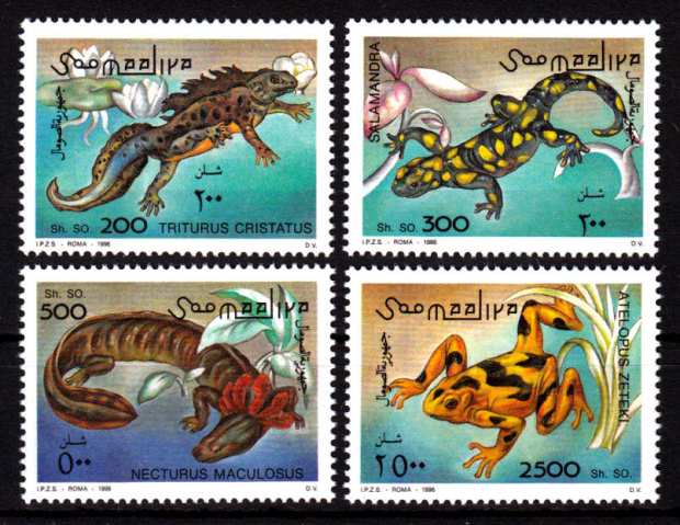 Aunque los sellos fueron hechos para el servicio postal de Somalia, su impresión fue realizada en Italia por el Istituto Poligrafico e Zecca dello Stato (IPZS) de Roma. Esto se ve en la parte inferior izquierda de los sellos. Esta institución se encarga de producir los billetes, monedas, sellos, pasaportes y otra documentación oficial de Italia. Y en la parte inferior derecha se puede ver el nombre de Davide Vangelli (Roma 1959), artista y escultor italiano que trabajaba para el IPZS. Realizó muchos otros sellos para Somalia (figura 6). Todos con este estilo vivo y fresco que nos recuerda su paisaje exótico. Respecto al hecho de que los sellos de Somalia corrieran a cargo del IPZS está el hecho de que que hasta 1960 una parte de Somalia fue una colonia italiana. La Somalia Italiana gozó de prosperidad y se mantuvieron los fuertes lazos comerciales.