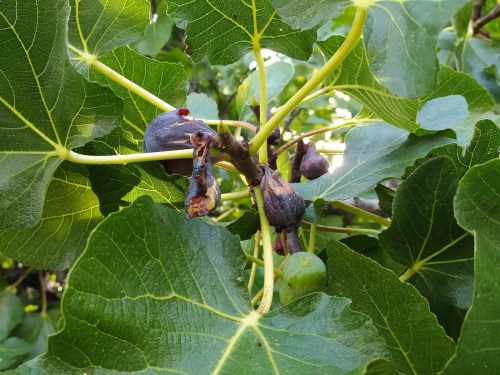 El pasado mes de septiembre estuve observando una higuera que se encontraba cerca de Montjuïc, Barcelona. Es un árbol interesante por la gran cantidad de insectos que atrae. Estaba lleno de frutos maduros en la copa y un montón caídos sobre el suelo (figura 1). Me fijé en algunos frutos picoteados por pájaros y otros mordidos por avispas (figura 2). Observé unos pequeños coleópteros en higos abiertos que, al acercarme, salían y echaban a volar. Capturé alguno y vi que se trataba de nitidúlidos (Nitidulidae). Al abrir algunos higos, vi también pequeñas larvas de díptero. En los higos caídos también había coleópteros y dípteros. Así pues, recogí unos cuantos para observar qué especies aparecían.