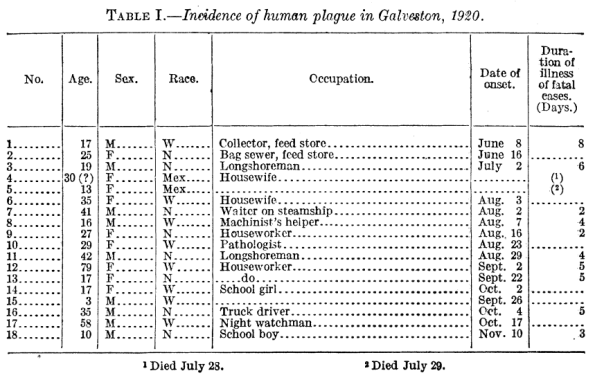 incidence of human plague in galveston 1920 Previous Next Publicado 14/11/2020 en 859 × 549 en La peste bubónica llegó a Galveston, Texas, en 1920