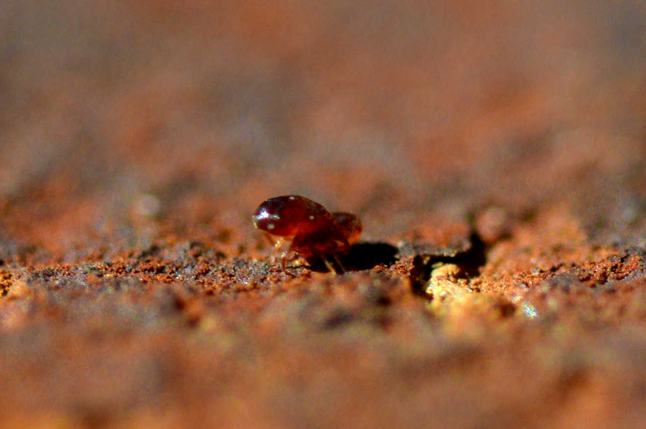 En tercer lugar, estos ácaros son visibles durante un corto período del año desde finales de invierno hasta finales de la primavera. Lo que he observado en otros lugares es que salen de su etapa invernal, seguramente del huevo, y van ganando tamaño hasta llegar al final de la primavera. En este momento se produce lo que me parecía el encuentro sexual y luego a principios de verano desaparecen. Mi deducción era que dejaran los huevos en rendijas, bajo tejas, etc., y no aparecieran hasta finales del siguiente invierno. Por tanto, podrían completar un solo ciclo al año. Todo ello significa que en suelos, fachadas y tejados de viviendas encuentran todo lo necesario para completar su ciclo: refugio, alimento y las condiciones ambientales idóneas.
