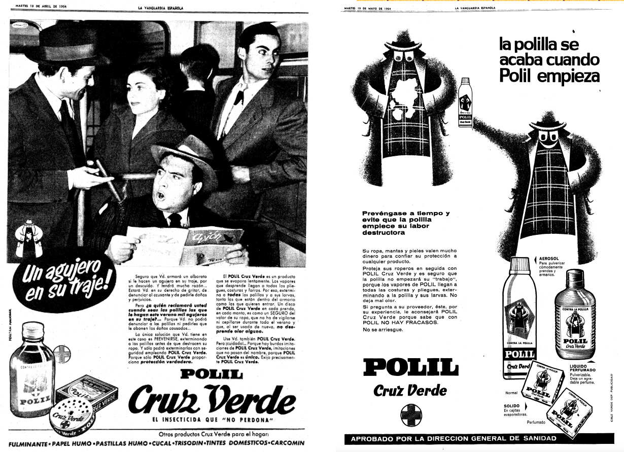 Fig 4. Anuncios de Polil de 1954 y 1962 publicados en La Vanguardia.