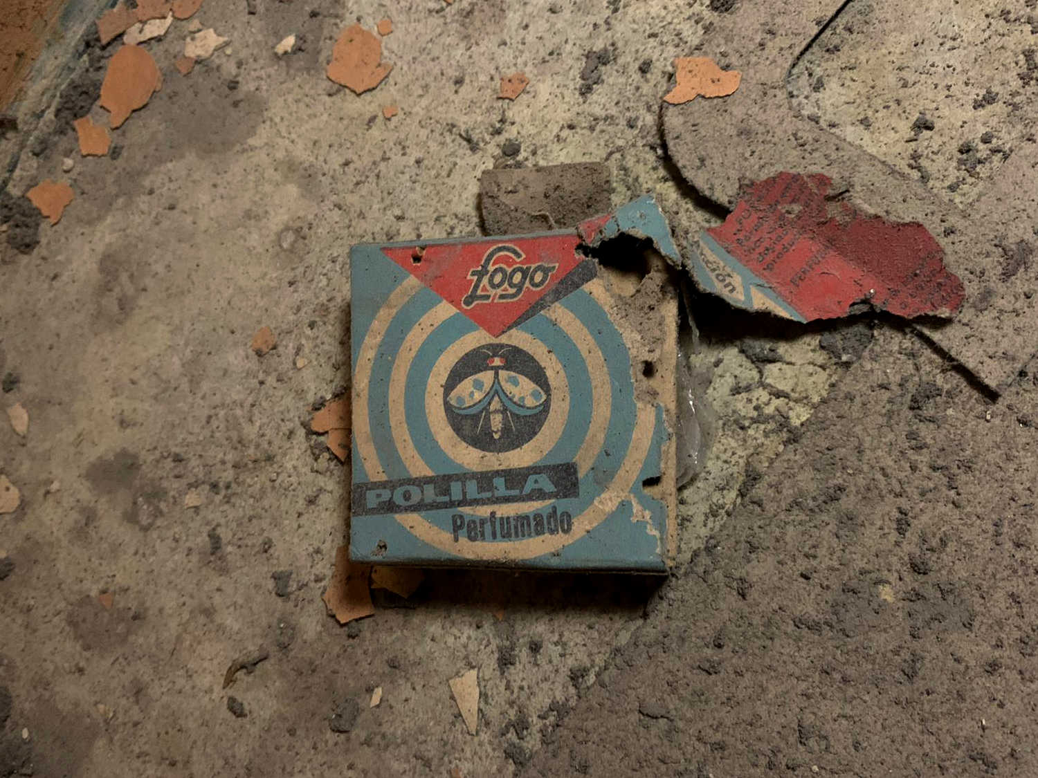 Fig 2. Envase de Fogo Polilla Perfumado en el suelo./ Raúl López 12-2020