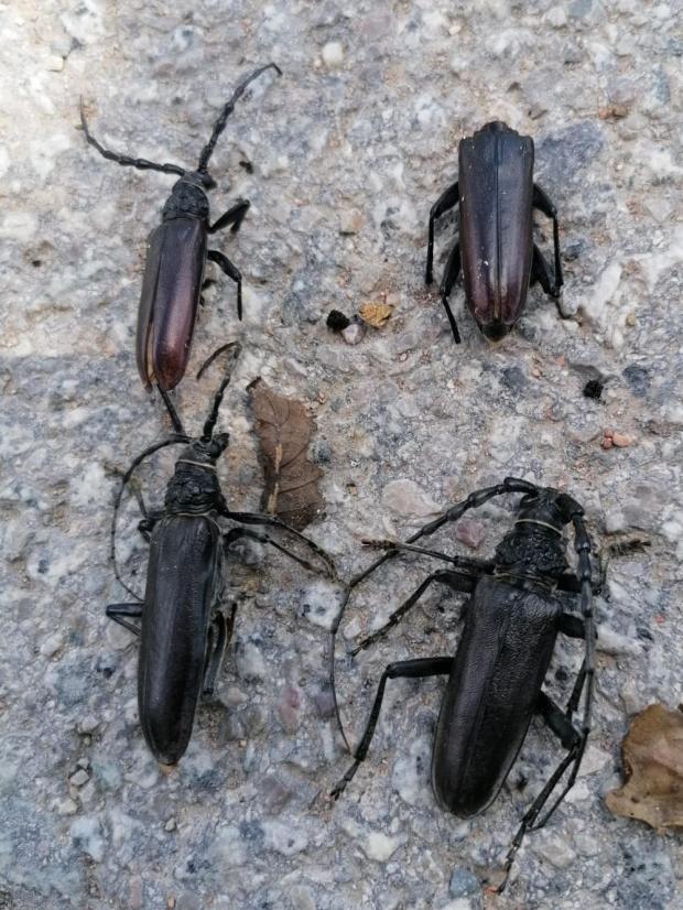 Es común que cuando se encuentra un adulto de Cerambyx de gran tamaño sea atribuido a C. cerdo. Cuenta además con numerosas citas en la literatura científica. De hecho, si buscas en la bibliografía parece como si C. cerdo predominara por encima de C. welensii. En este punto, me da la sensación que podría suceder lo contrario y que C. welensii fuera más común, por lo menos en la zona en la que vivo en el noreste de la península [2]. No es fácil encontrar Cerambyx, ya que completan su ciclo en bosques maduros con árboles del género Quercus. Es cierto que en esta parte de la península ha aumentado mucho la masa forestal desde hace medio siglo por el abandono de tierras de labranza. Pero también es cierto que son bosques jóvenes y poblados por conífera.
